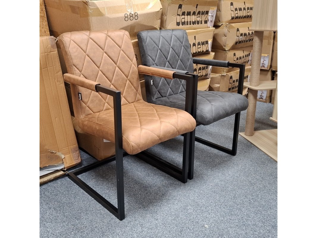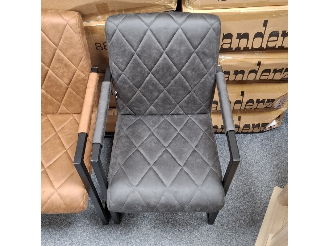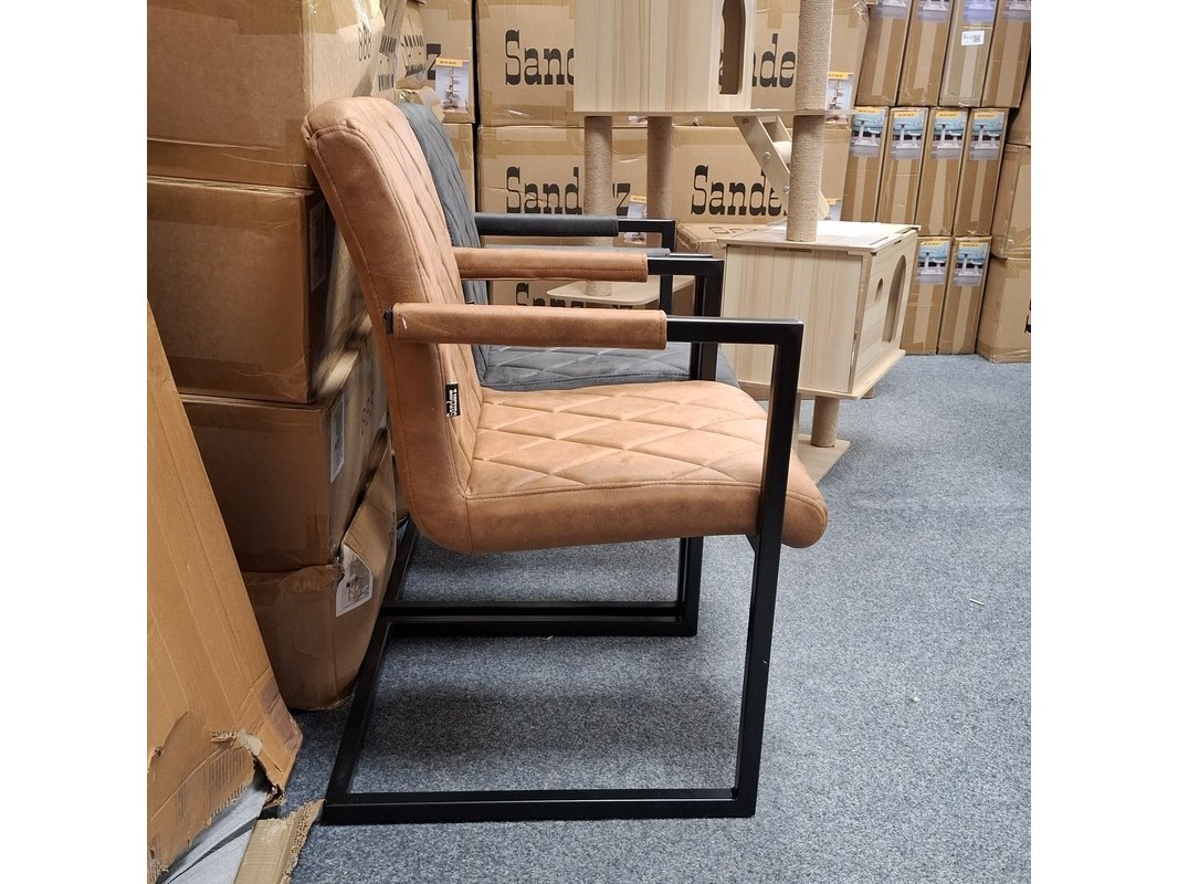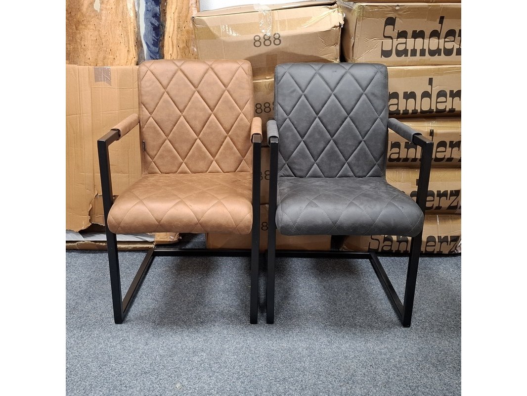 Product: Eetkamerstoel met armleuning Specificaties: 2x antraciet en 2x cognac