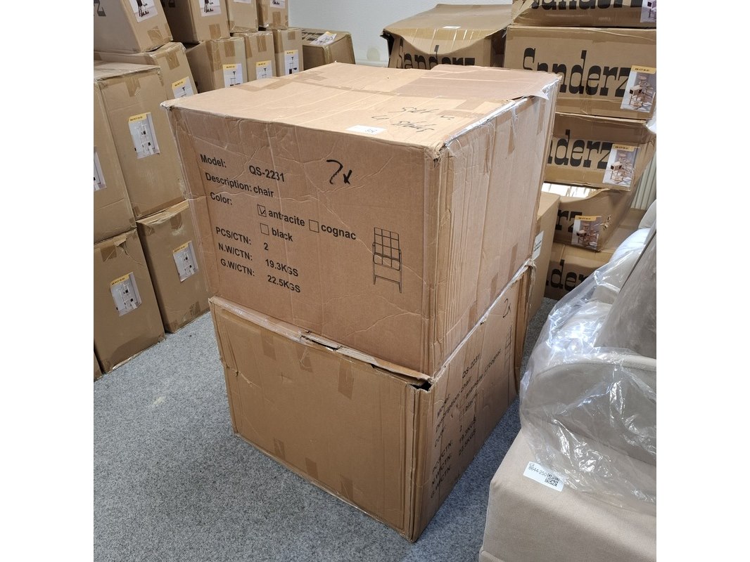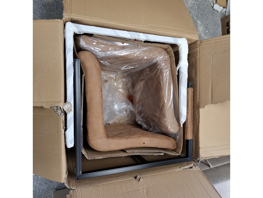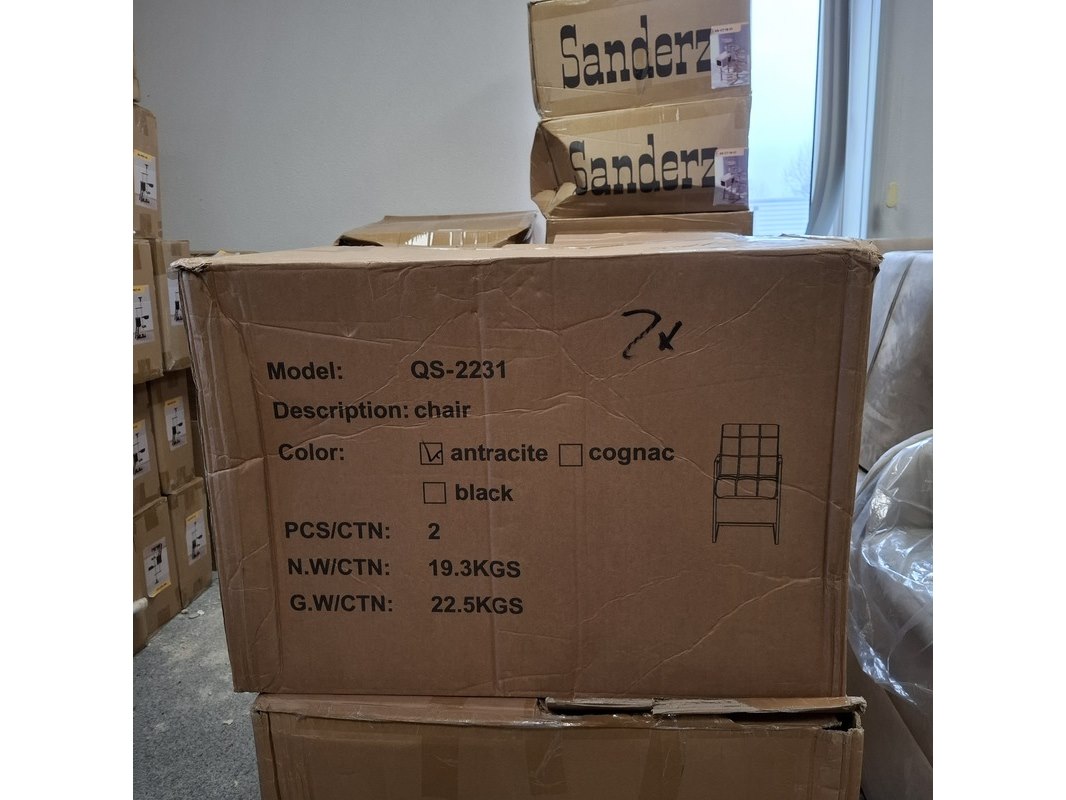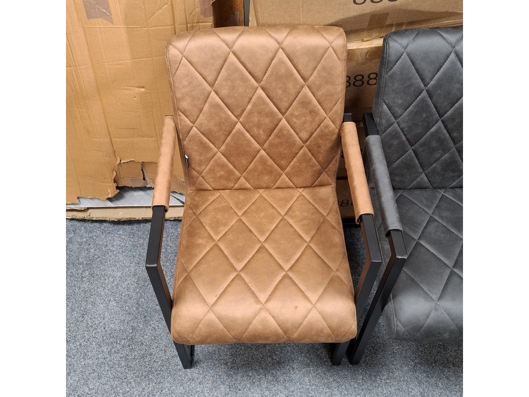 Product: Eetkamerstoel met armleuning Specificaties: 2x antraciet en 2x cognac