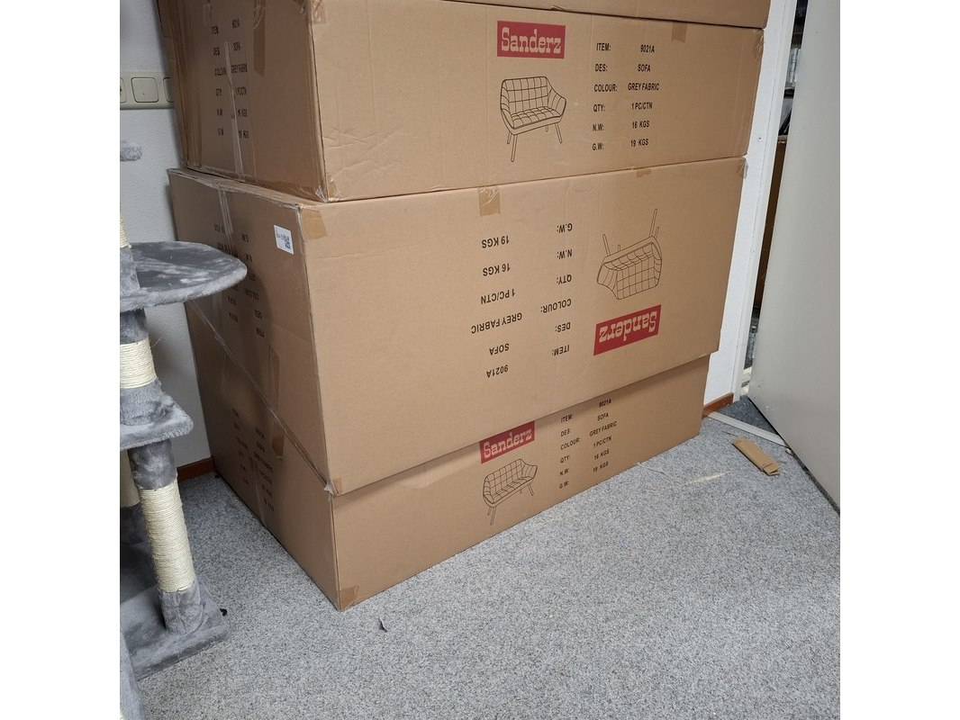 Product: 2-zits bank Kleur: Grijs Specificaties: In doos