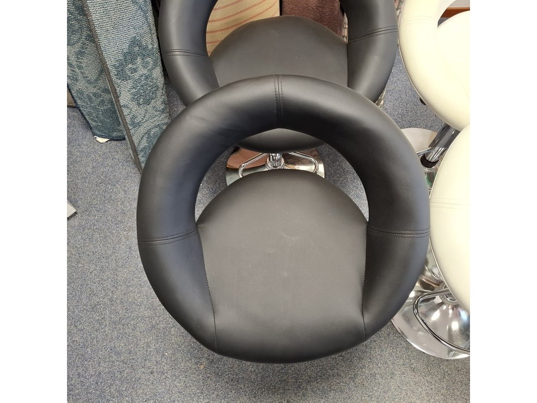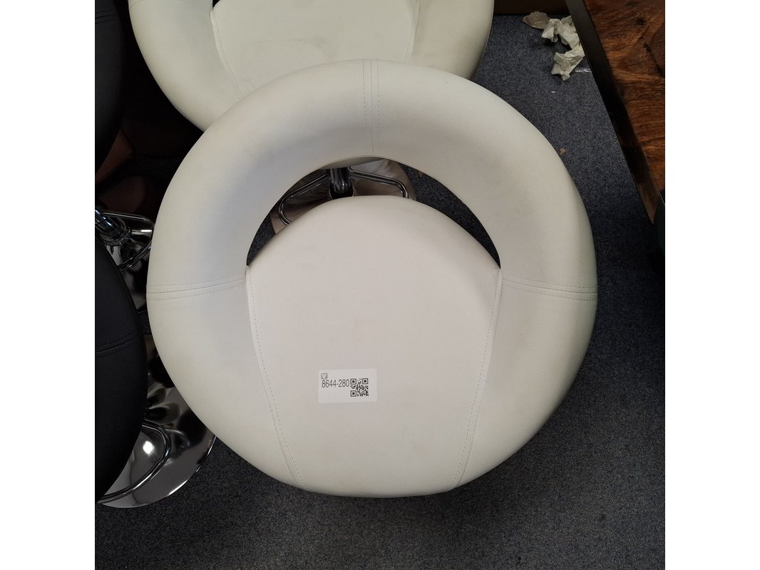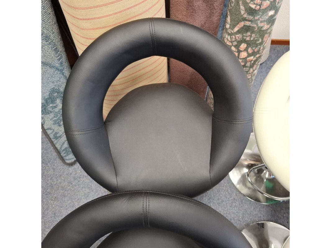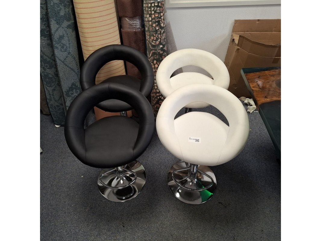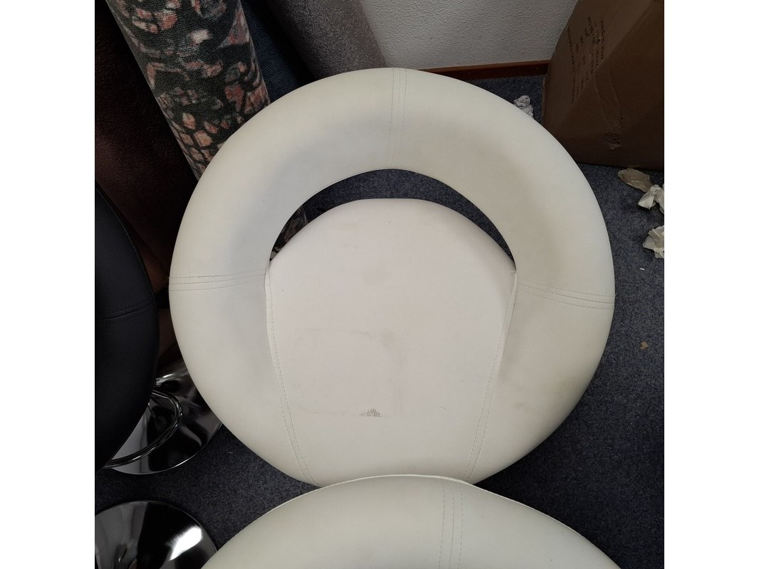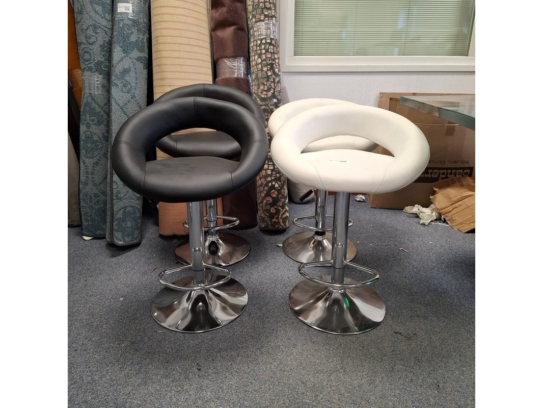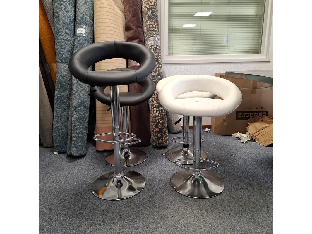 Product: barkruk Specificaties: In hoogte verstelbaar. 2x zwart en 2x wit, 1x witte kruk dient schoon gemaakt te worden, vlekken op zitting. Betreft showroommodellen, kan een beschadiging bevatten.