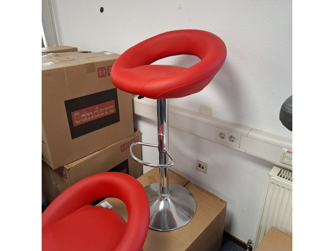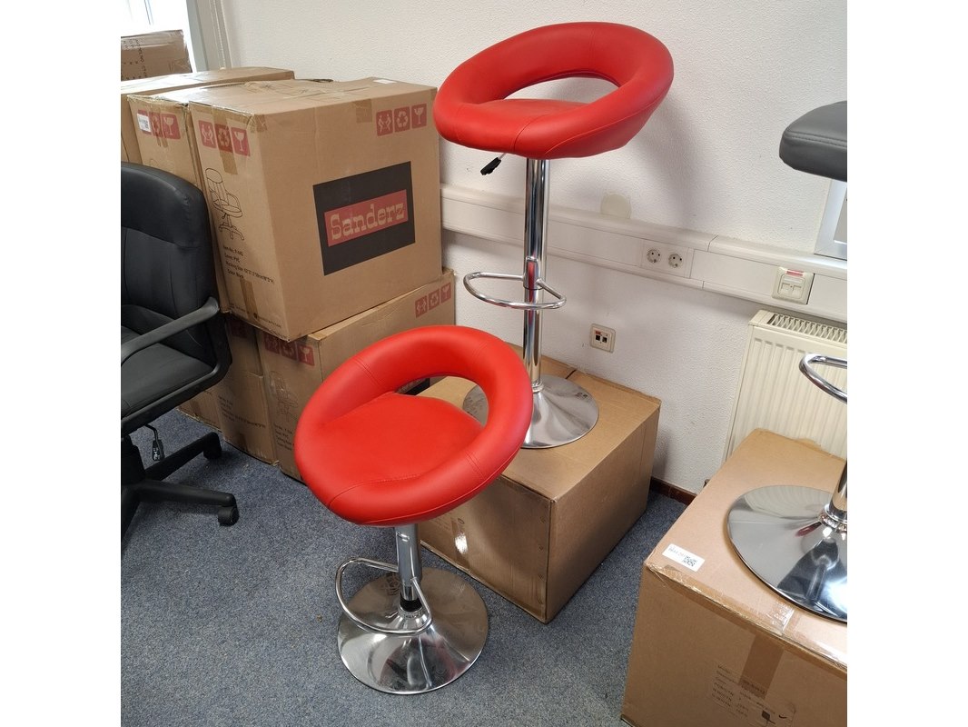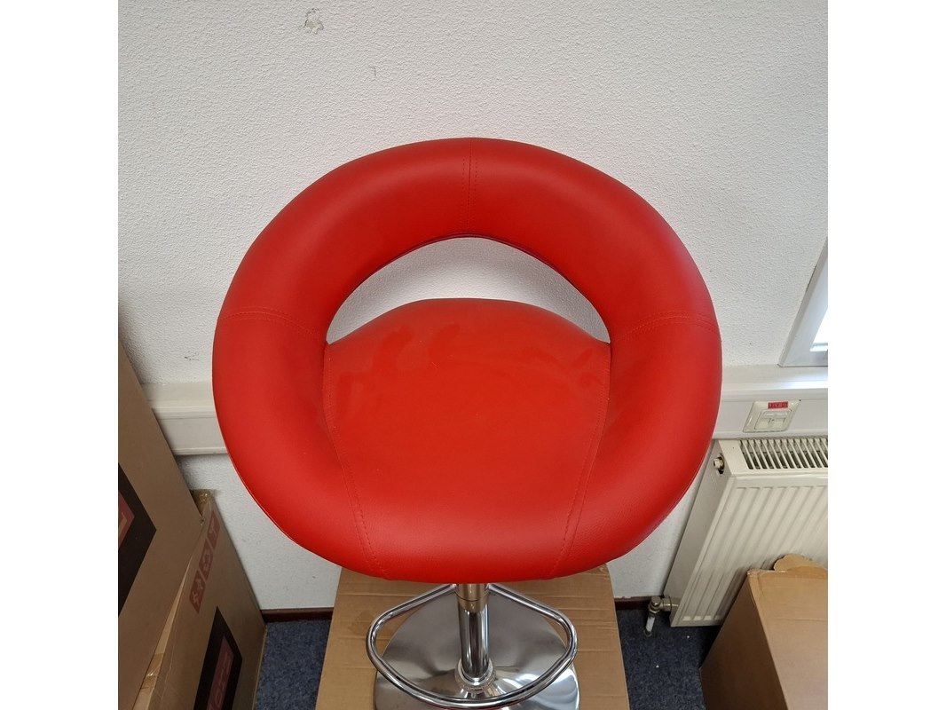 Product: Barkruk Kleur: Rood Specificaties: In hoogte verstelbaar. 2x showroommodel en 2x in doos.
