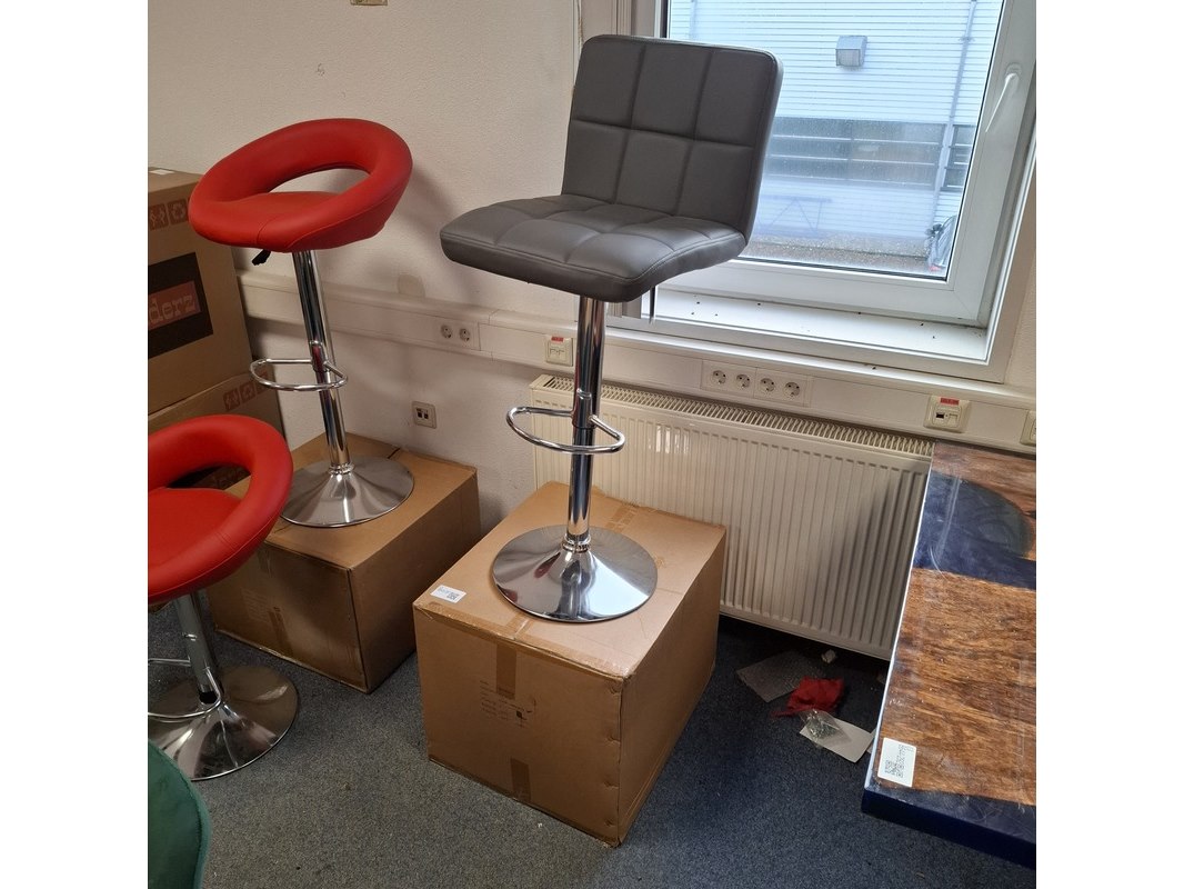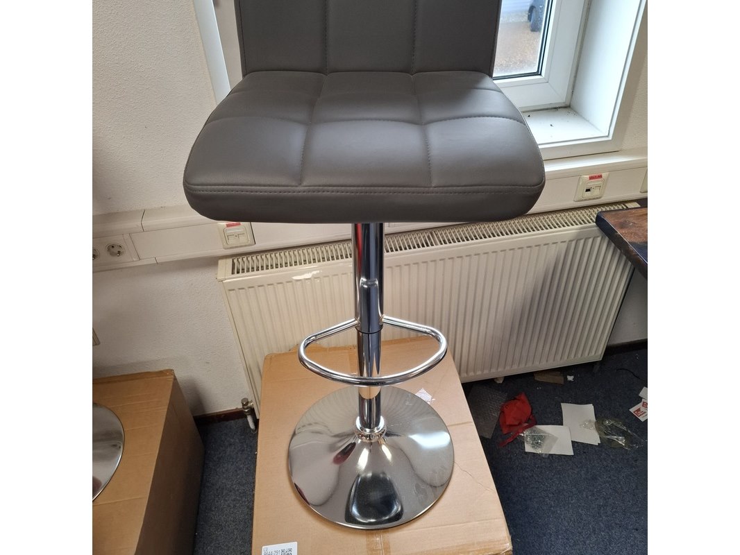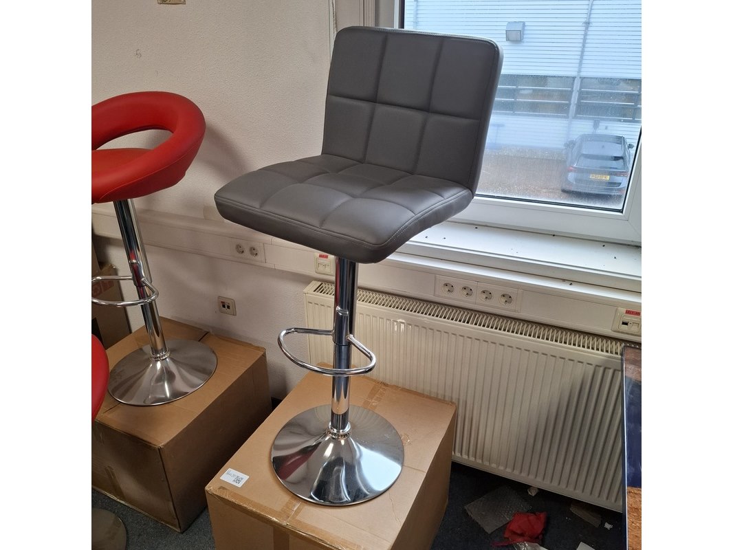 Product: Barkruk Kleur: Grijs Specificaties: In hoogte verstelbaar. 1x showroommodel, 2x in doos
