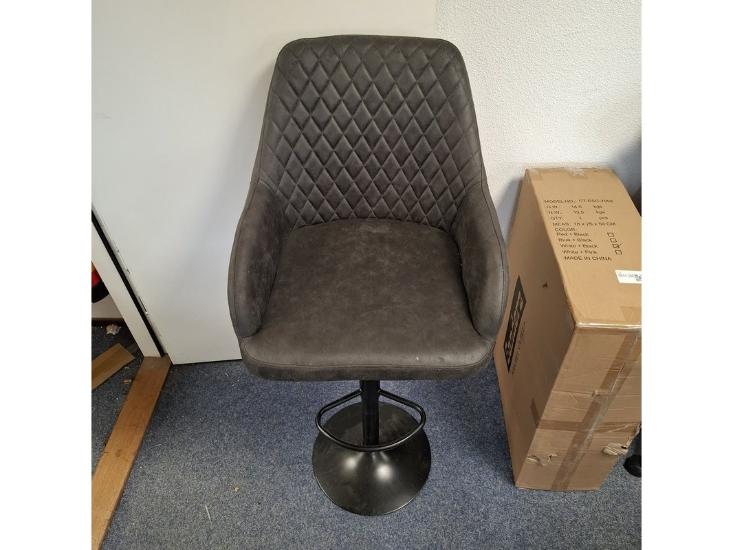 Product: Barkruk Kleur: Antraciet Specificaties: In hoogte verstelbaar. Betreft showmodellen, kan een beschadiging bevatten.