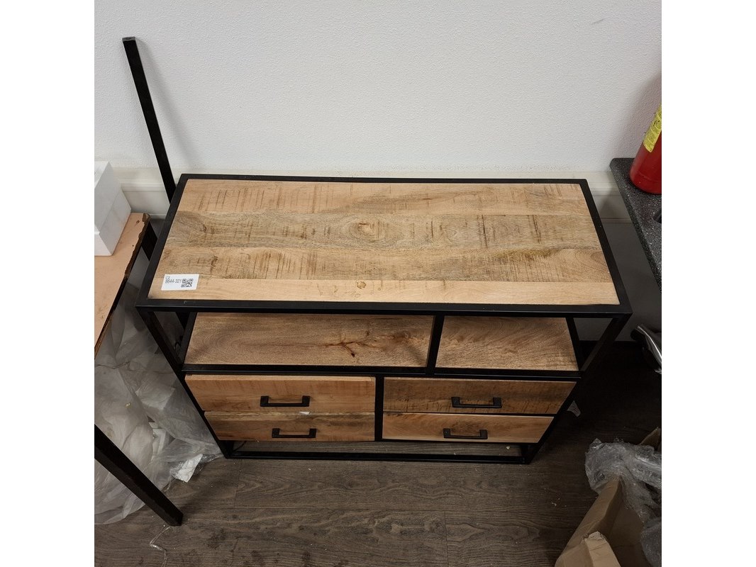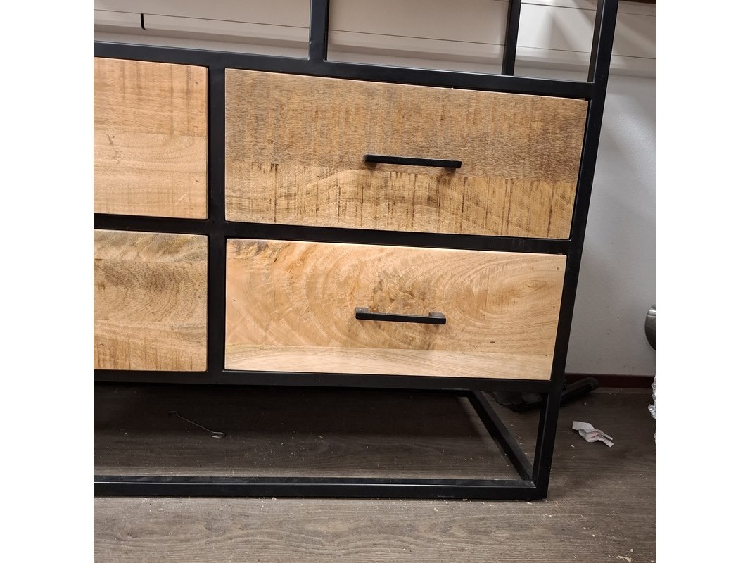 Product: Wandkast met lades Materiaal: mangohout/metaal Afmeting: hxbxd ca. 89x100x40 cm Specificaties: Betreft een showroommodel, kan een beschadiging bevatten.
