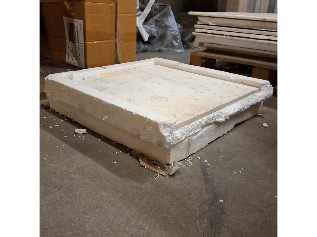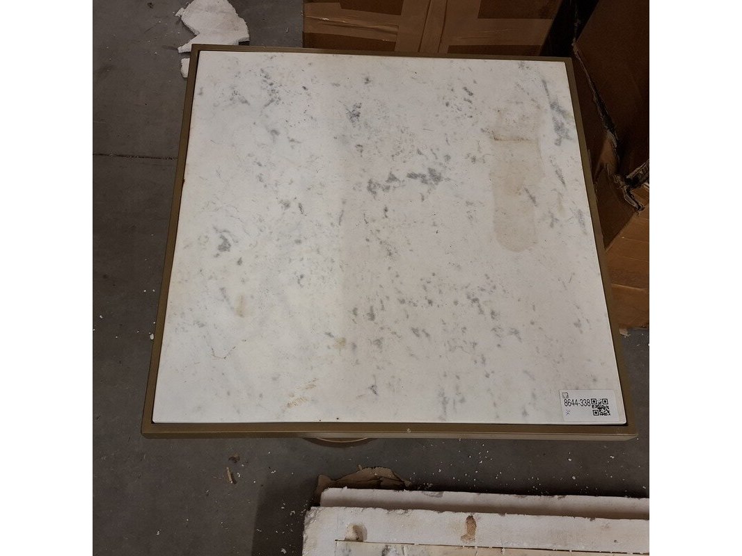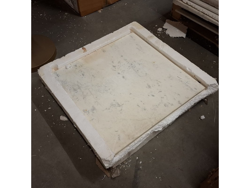 Product: Marmeren blad, vierkant Afmeting: lxb ca. 58x58 cm Specificaties: Inclusief 1x goudkleurige poot, deze is krom.