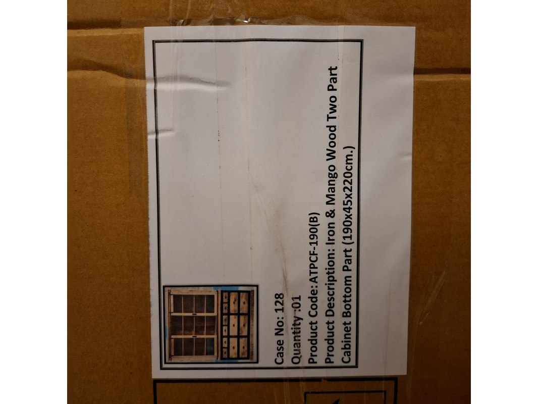 Product: Buffetkast, mangohout Materiaal: Mangohout/metaal Afmeting: Ca. 190x45x220 cm Specificaties: In 2x doos