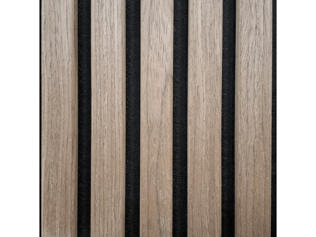 Product: Akoetisch wandpaneel Kleur: Walnoot Afmeting: 240x60 cm, 21 mm Specificaties: 4x in doos en 1x showmodel