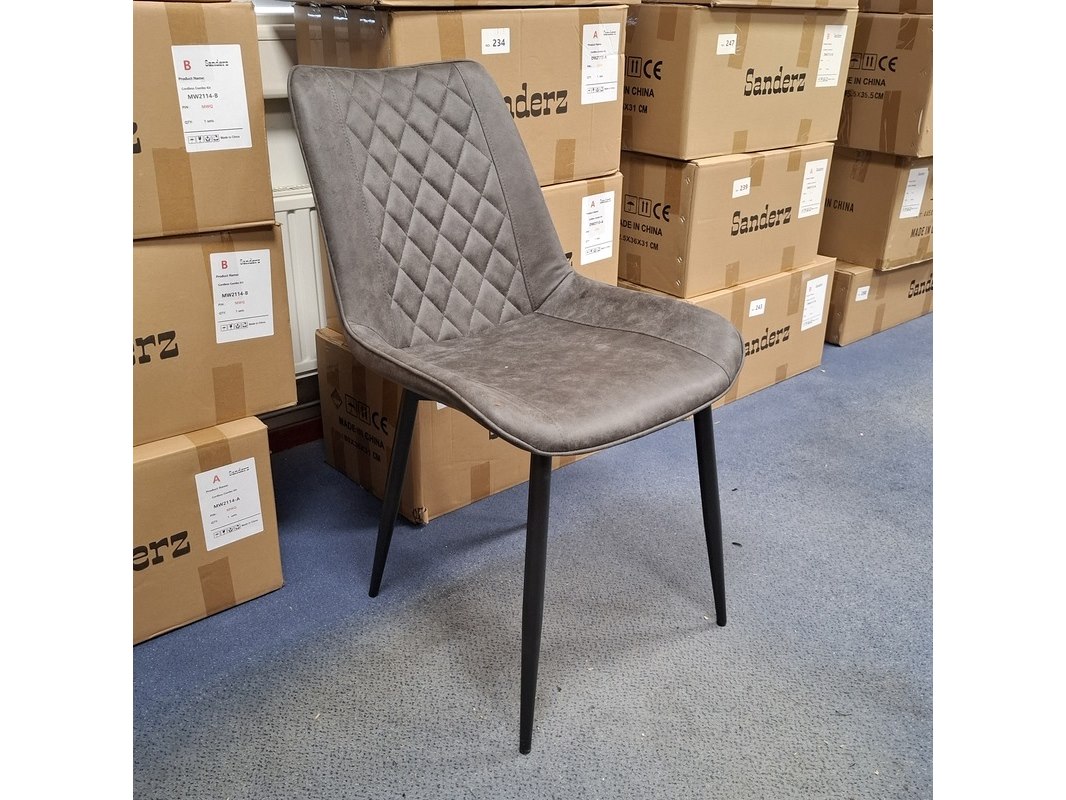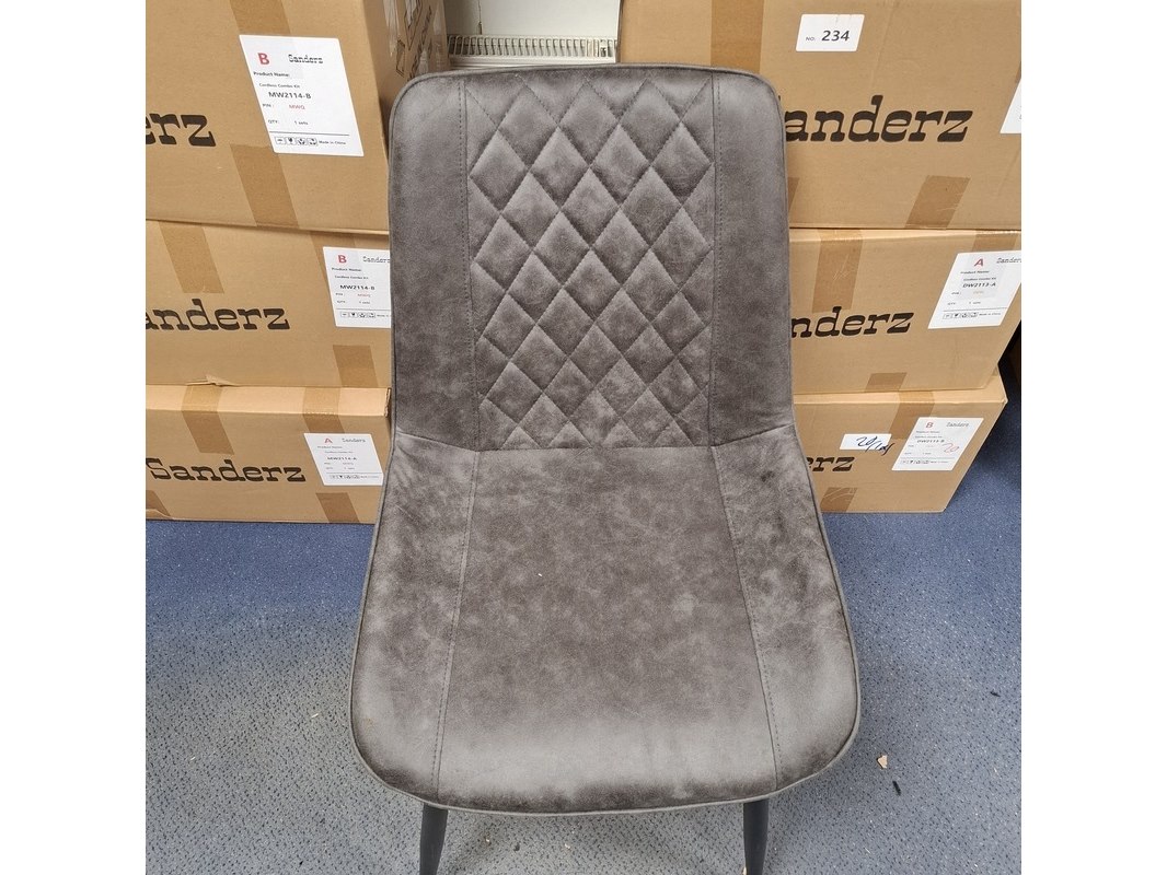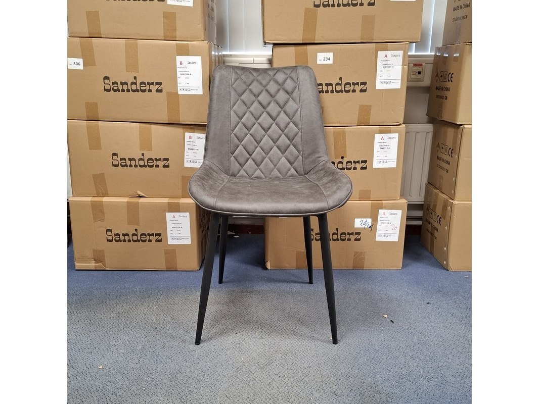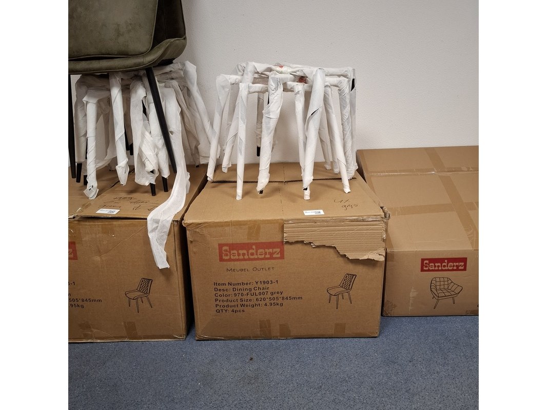 Product: Eetkamerstoel Kleur: Grijs Specificaties: In doos, poten er los bij.