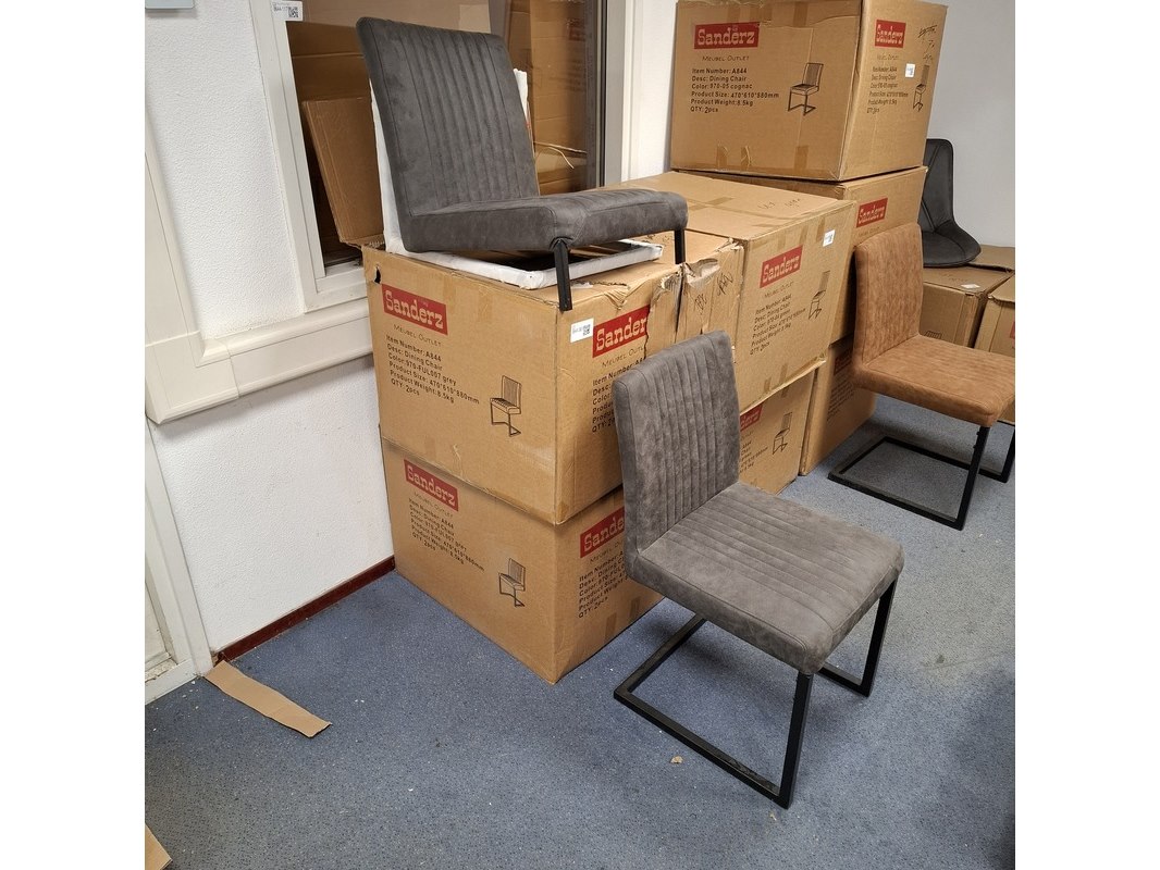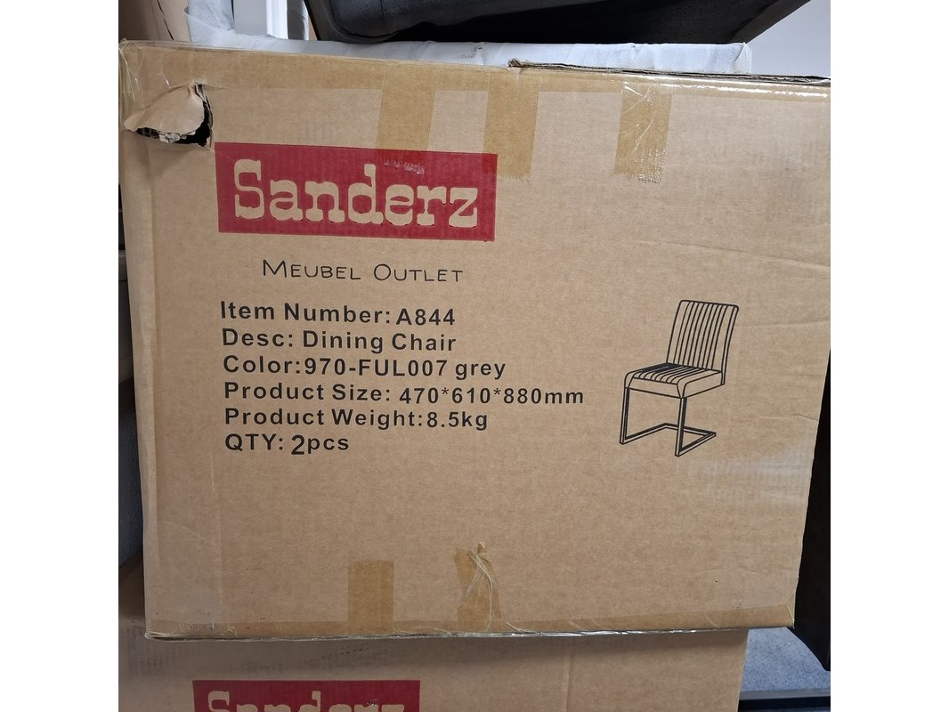 Product: Eetkamerstoel Kleur: Grijs Specificaties: 3x in doos, 2x losse stoel