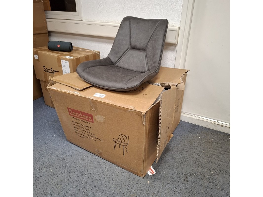 Product: Eetkamerstoel Kleur: Grijs Specificaties: 3x in doos, 1x losse stoel