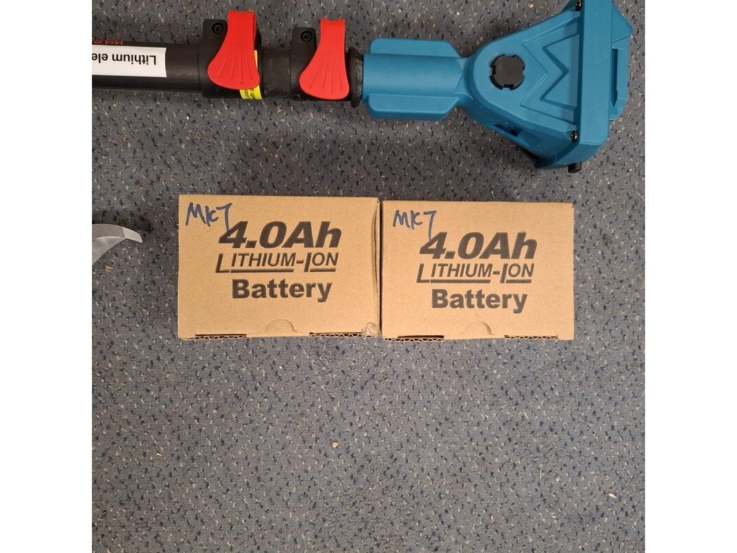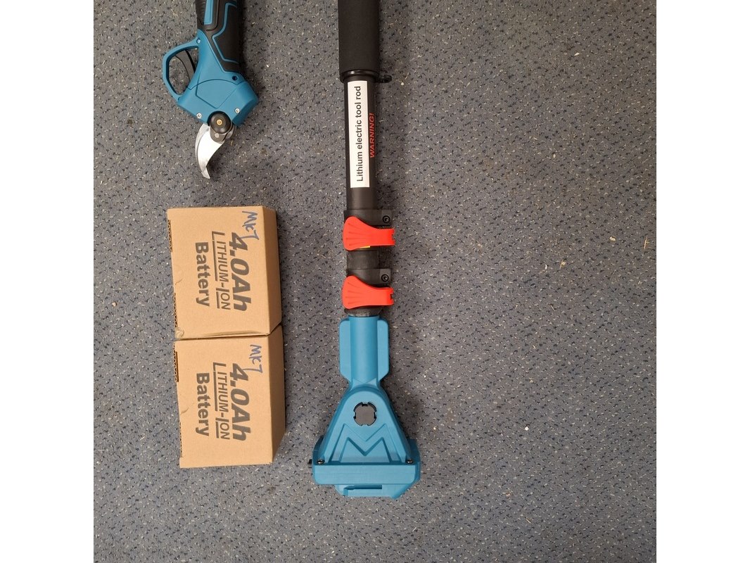 Product: Accu stokzaag/snoeischaar Specificaties: Bestaande uit: takkenknipper, takkenzaag, verleng steel, lader en 2x accu.