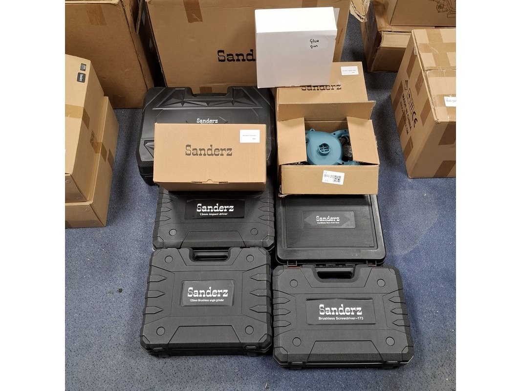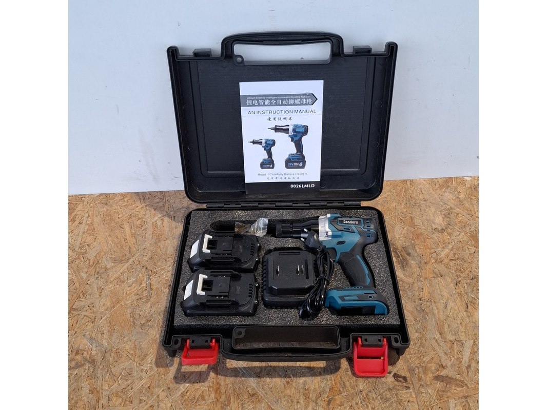 Product: Accu gereedschap Kleur: Blauw Specificaties: Bestaande uit: Schroefmachine 173 Nm (brushless) Moerringenrivetpistool (nut rivet gun) Haakse slijper 125 mm (brushless) Slagschroevendraaier 13 mm (impact driver) Vetpistool (grease gun) Freesmachine (brushless) Lijmpistool (hot glue gun) Bladblazer (blower) Ceramic paving machine 125 mm (brushless)