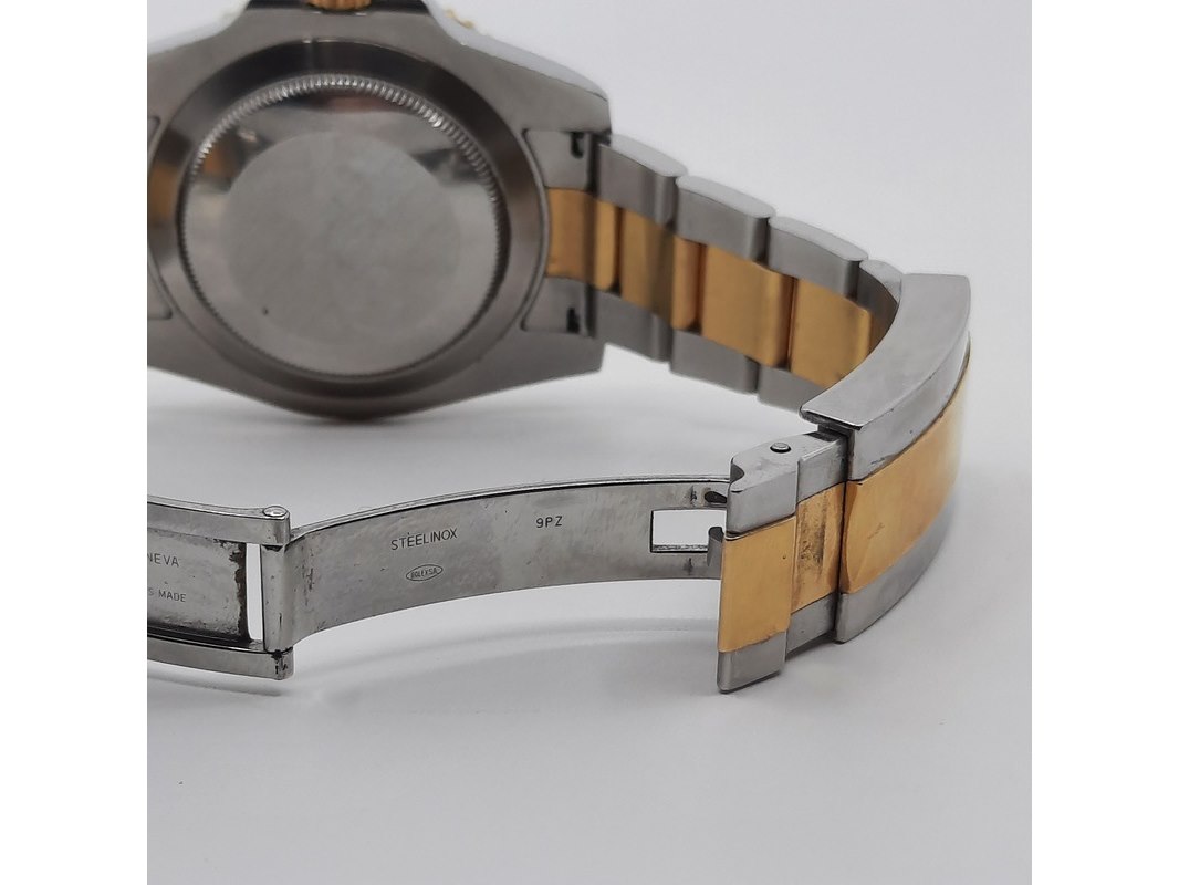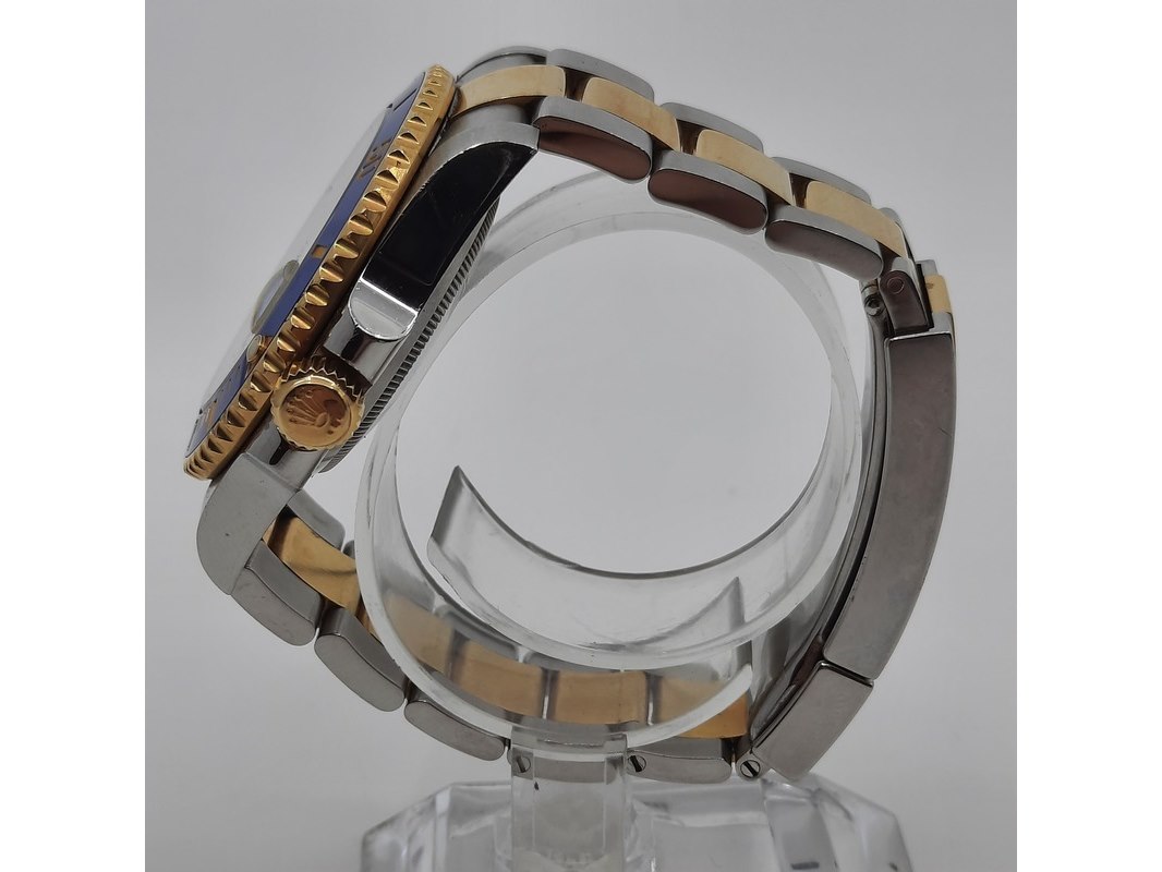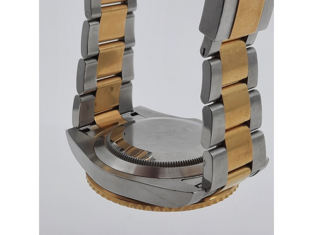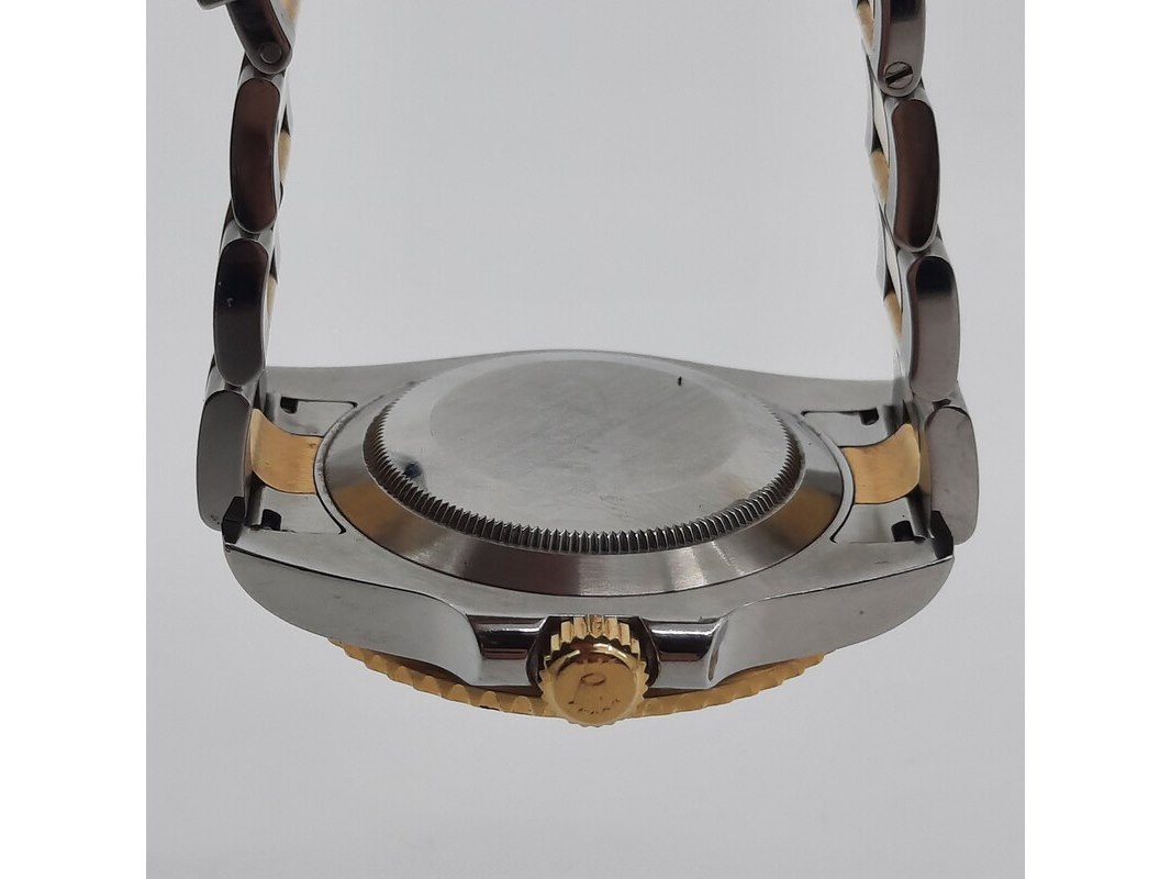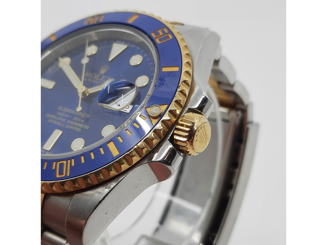 Merk: Rolex Product: Heren polshorloge Conditie: gebruikt Specificaties: Een staal met geelgouden heren polshorloge, Rolex Submariner 116613. Met blauwe keramische lunet, blauwe wijzerplaat, punt, lijn en pijlindex, automatisch uurwerk, kaliber 3135 en Oyster model goud met stalen band. Geen doos en geen certificaat . Met Rolex winder in matige staat.