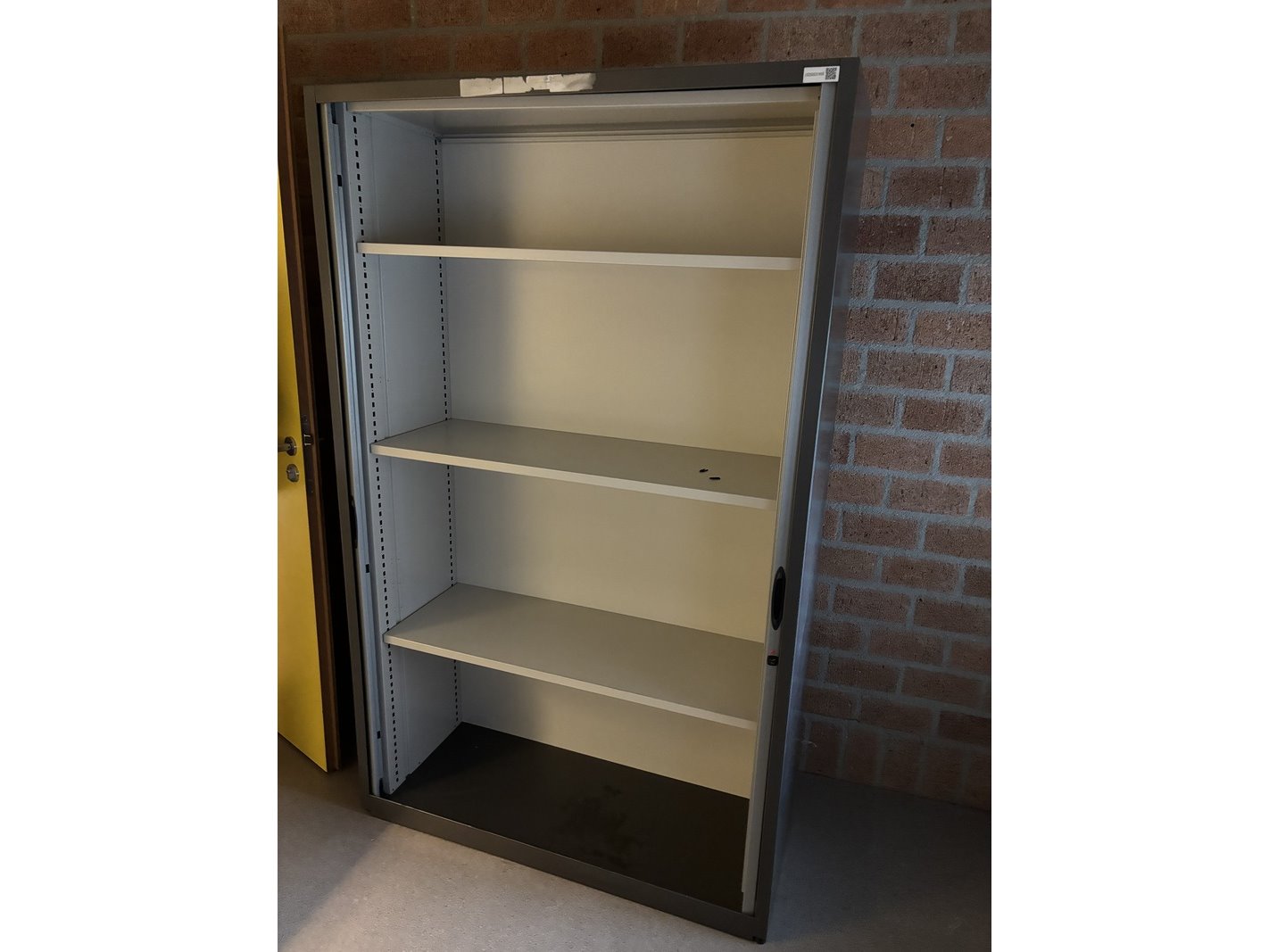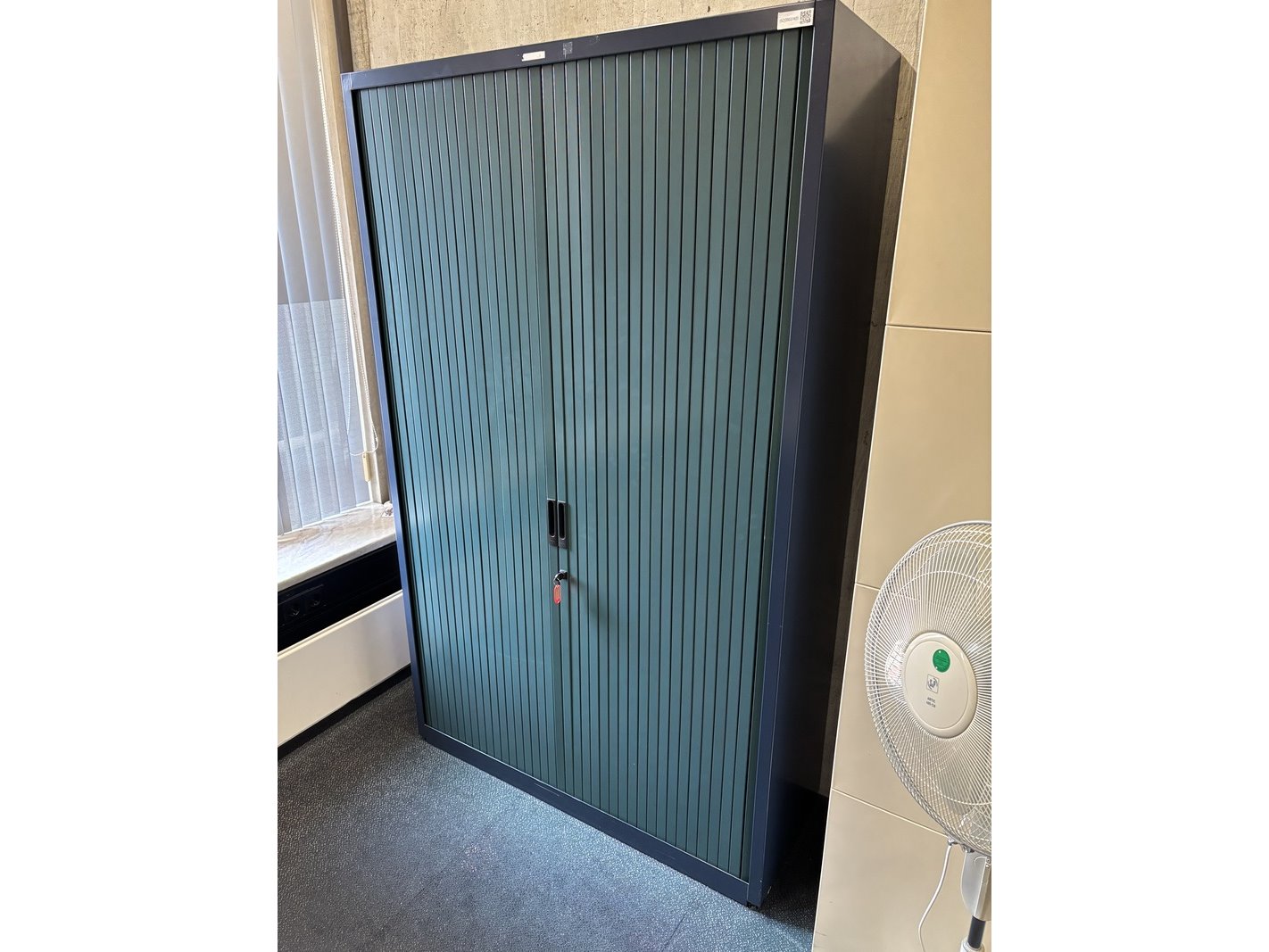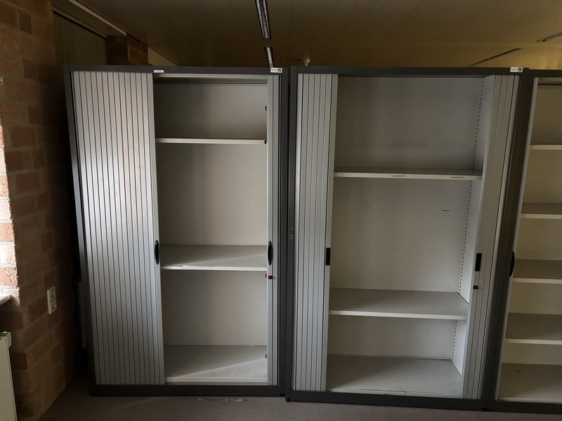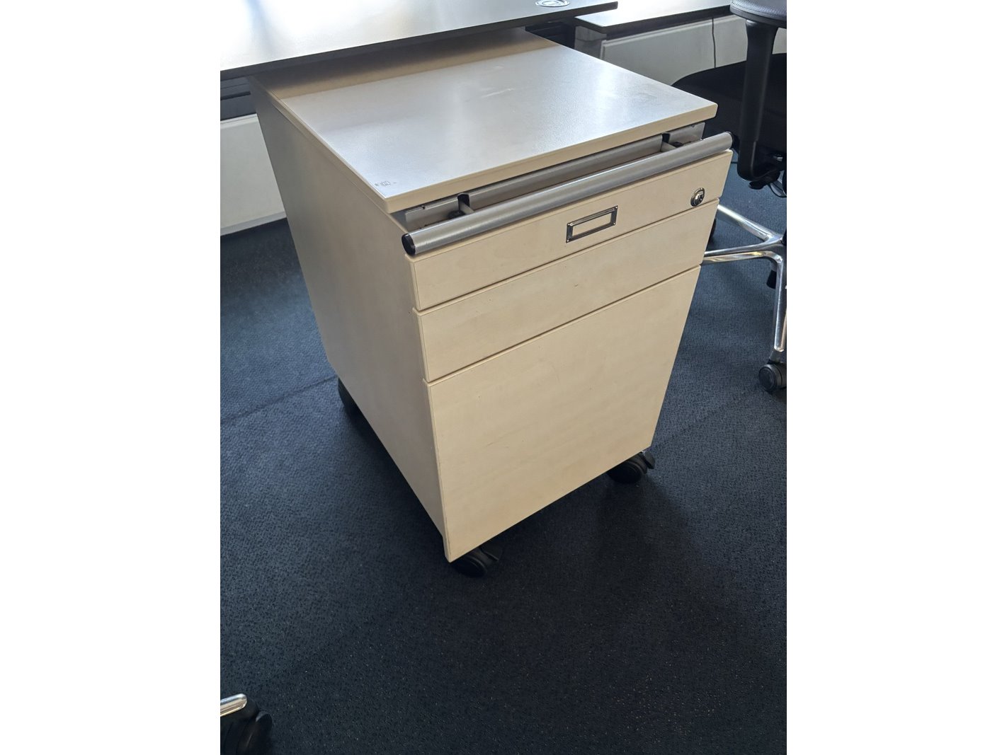 Product: Partij kantoormeubilair Specificaties: Het betreft een omvangrijke kavel met divers kantoormeubilair. Bestaande uit o.a. 95x Jaloeziekast 85x Ladeblok 10x Lockerkast 15x Ventilator 14x Tafel 2x Cateringwagen 3x Bureau