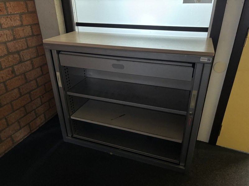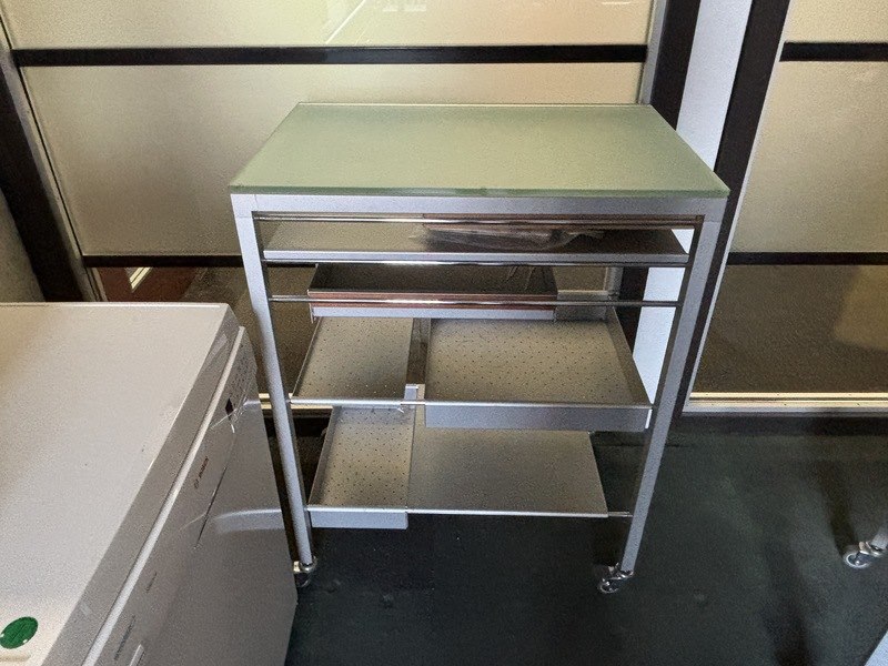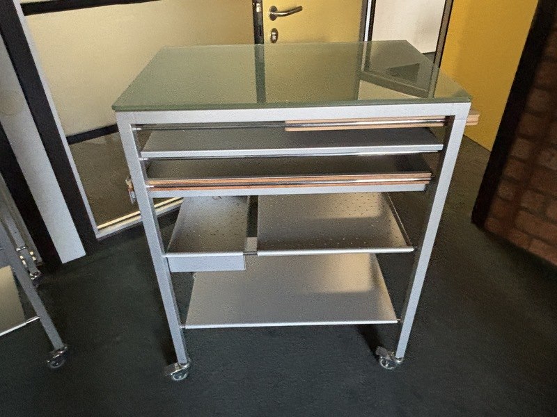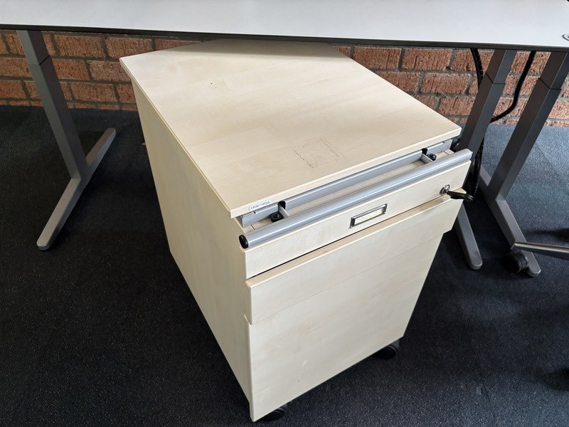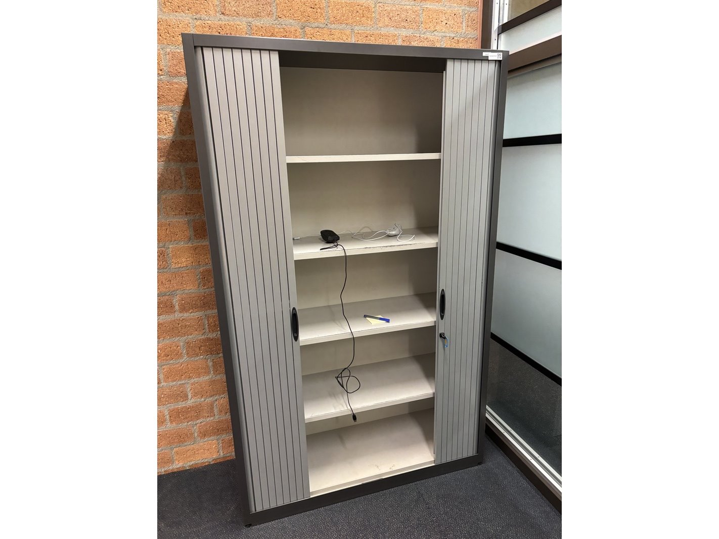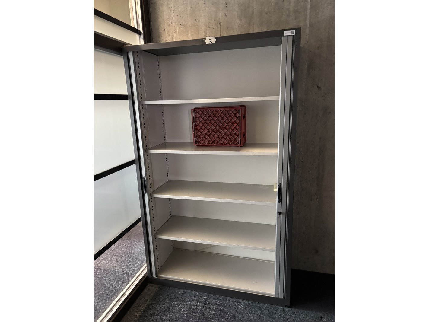 Product: Partij kantoormeubilair Specificaties: Het betreft een omvangrijke kavel met divers kantoormeubilair. Bestaande uit o.a. 95x Jaloeziekast 85x Ladeblok 10x Lockerkast 15x Ventilator 14x Tafel 2x Cateringwagen 3x Bureau