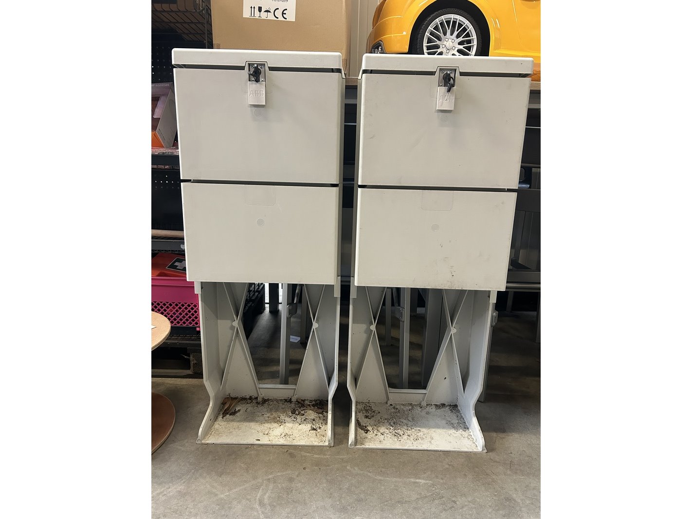 2x componenten voetpadkast, schakelkast abb, eh pedestal