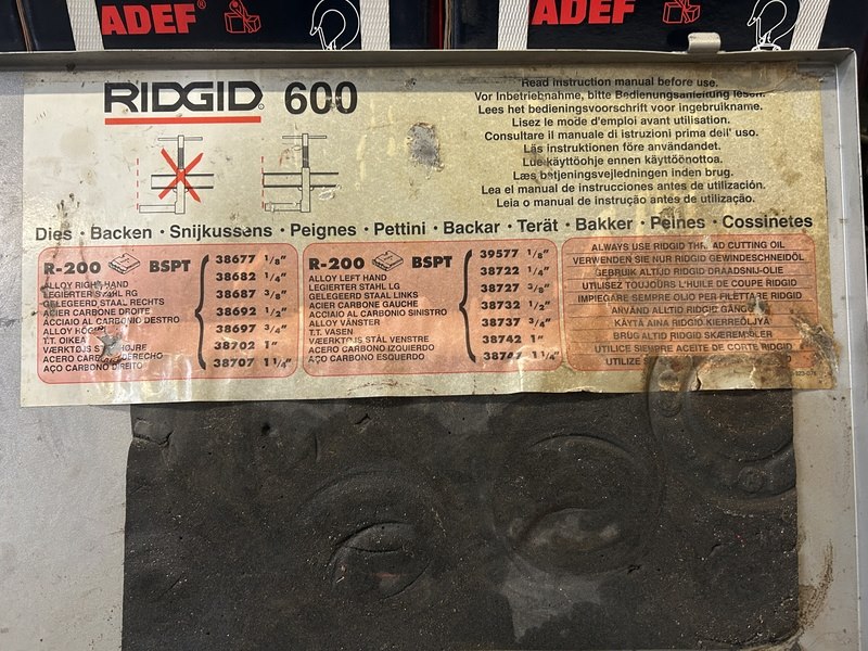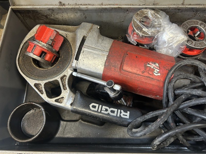 Merk: Ridgid Product: Draadsnijmachine met 5 draadsnijkoppen Conditie: gebruikt