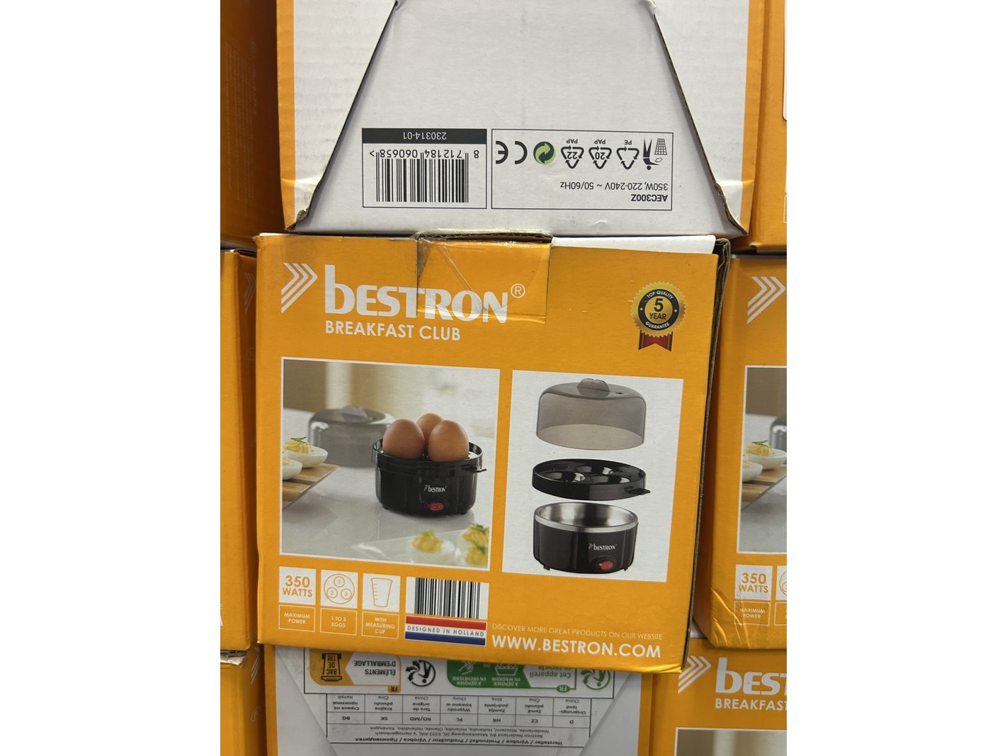 Merk: Bestron Product: Eierkoker Specificaties: Nieuw, showroom modellen en demo modellen. De verpakking kan beschadigd zijn. Showroom modellen en demo modellen kunnen niet werkend zijn en/of niet compleet.