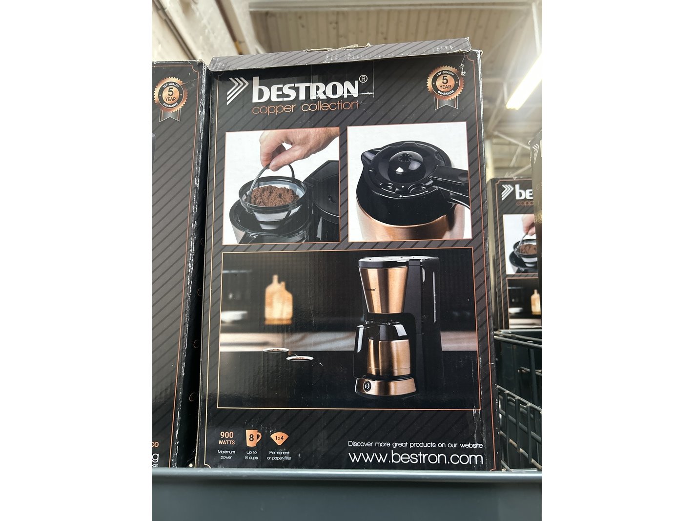 Merk: Bestron Product: Koffiezetapparaat Specificaties: Nieuw, showroom modellen en demo modellen. Werking onbekend.