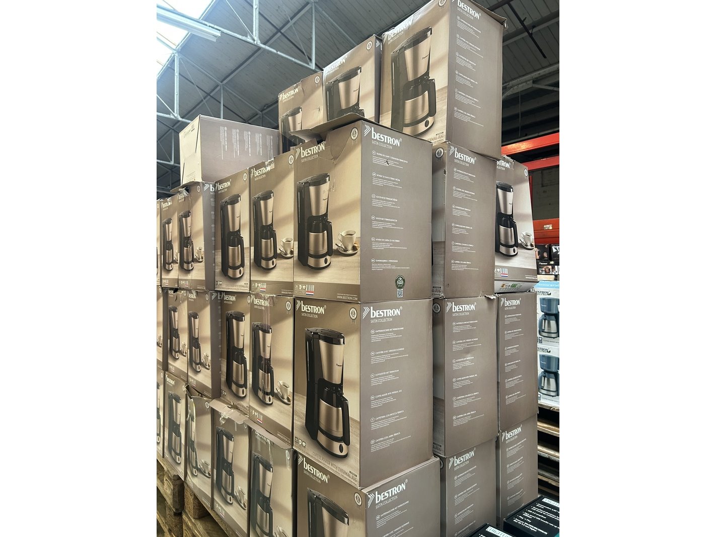 Merk: Bestron Product: Koffiezetapparaat met thermoskan Specificaties: Nieuw, showroom modellen en demo modellen. De verpakking kan beschadigd zijn. Showroom modellen en demo modellen kunnen niet werkend zijn en/of niet compleet.