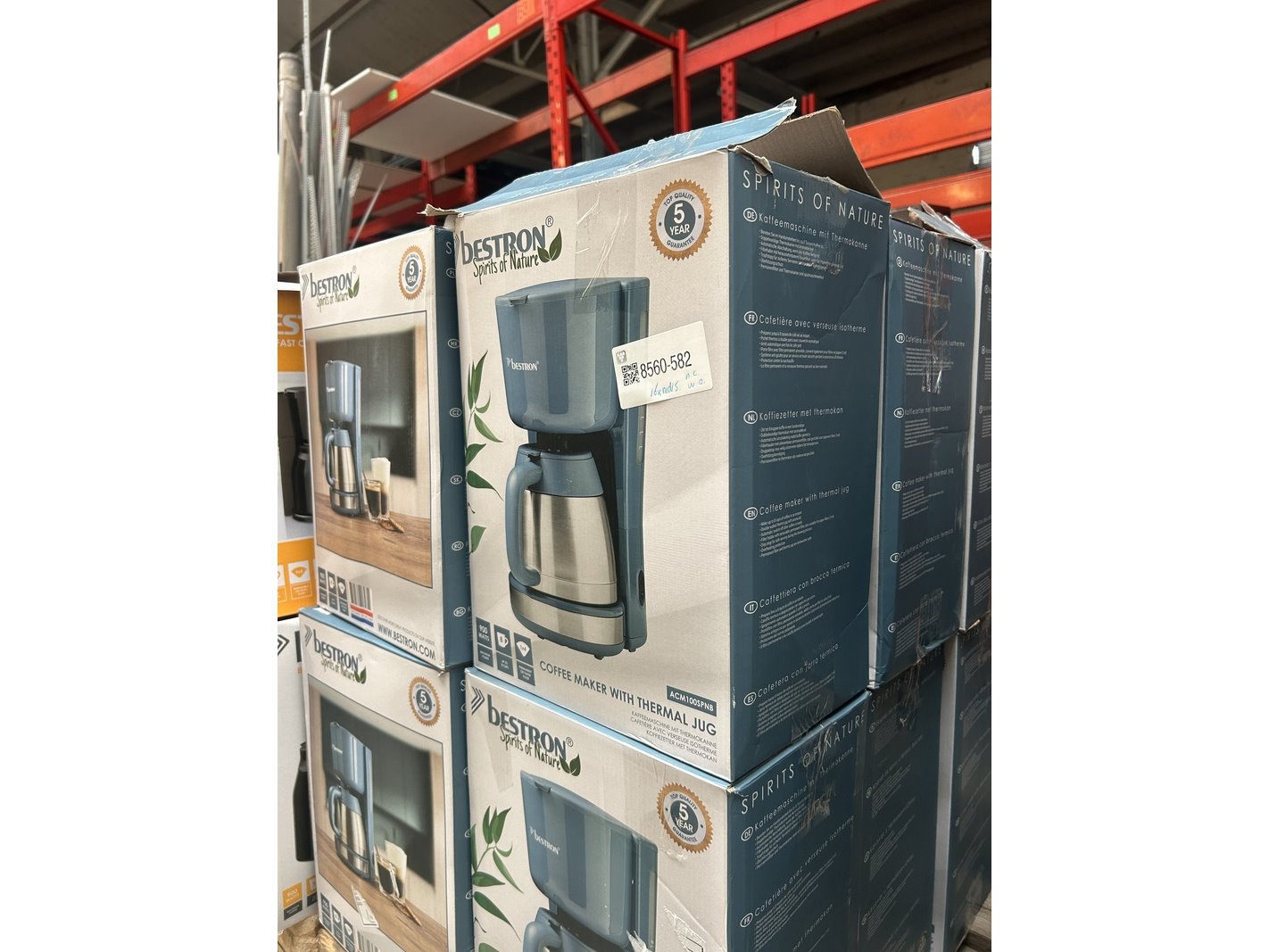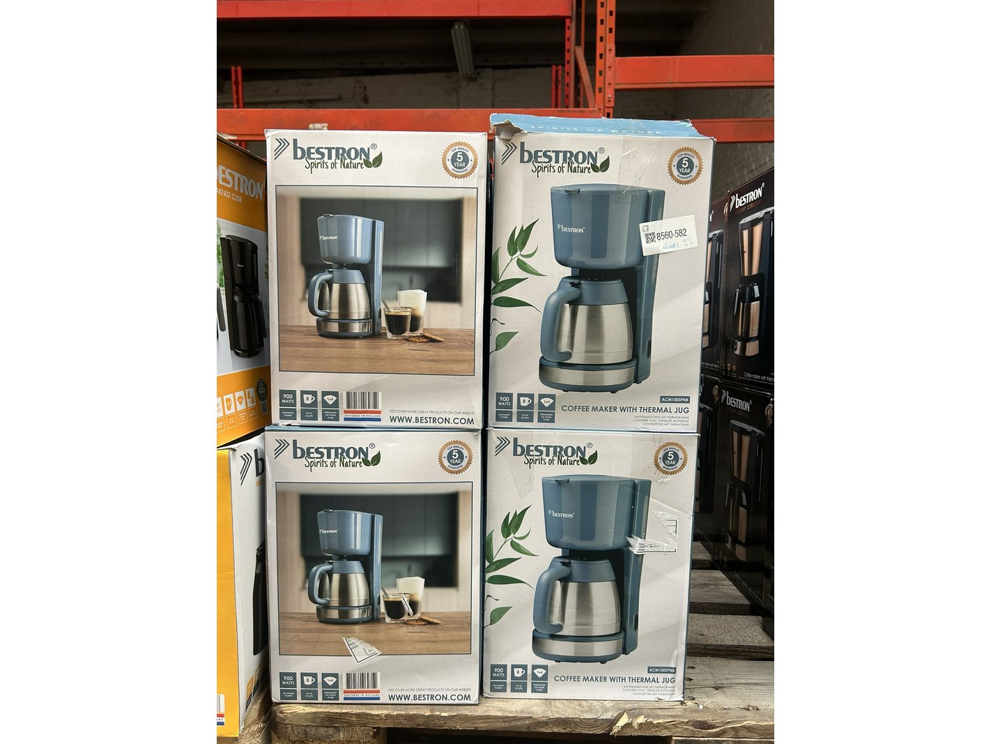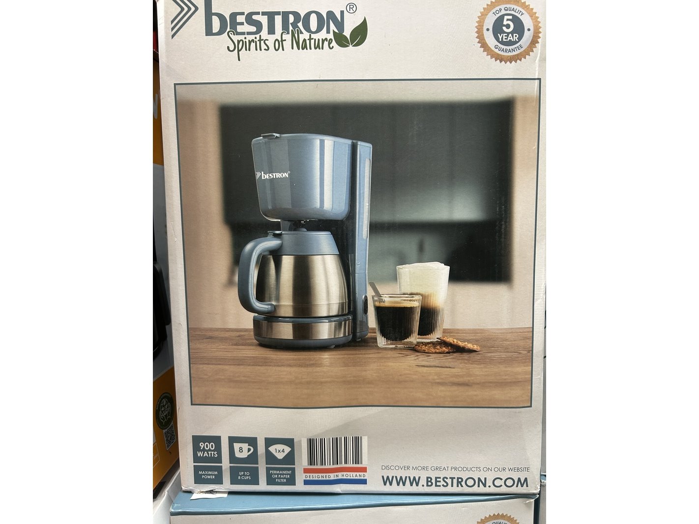 Merk: Bestron Product: Koffiezetapparaat met thermoskan Specificaties: Nieuw, showroom modellen en demo modellen. De verpakking kan beschadigd zijn. Showroom modellen en demo modellen kunnen niet werkend zijn en/of niet compleet.