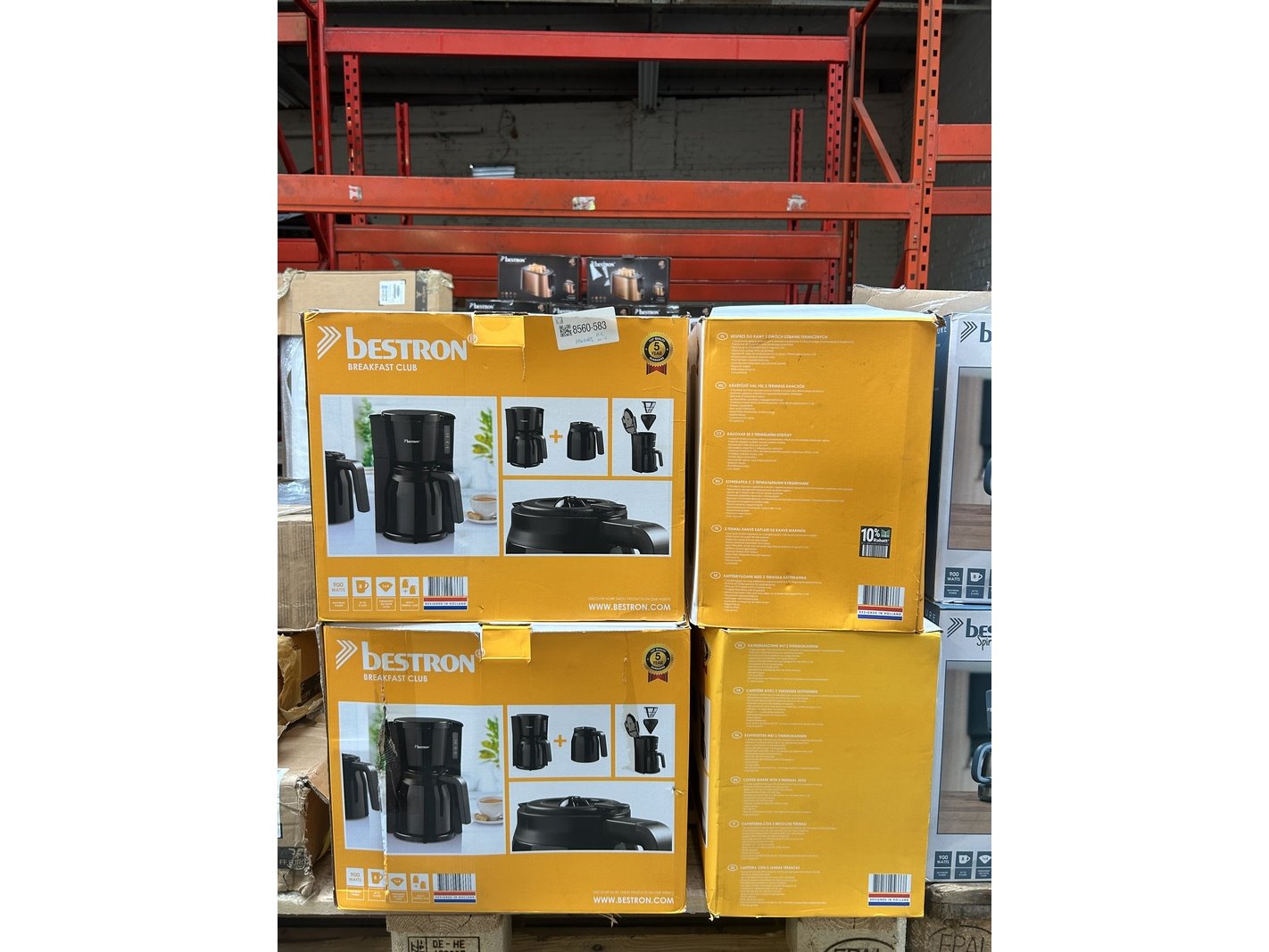 Merk: Bestron Product: Koffiezetapparaat met 2 thermoskannen Specificaties: Nieuw, showroom modellen en demo modellen. De verpakking kan beschadigd zijn. Showroom modellen en demo modellen kunnen niet werkend zijn en/of niet compleet.