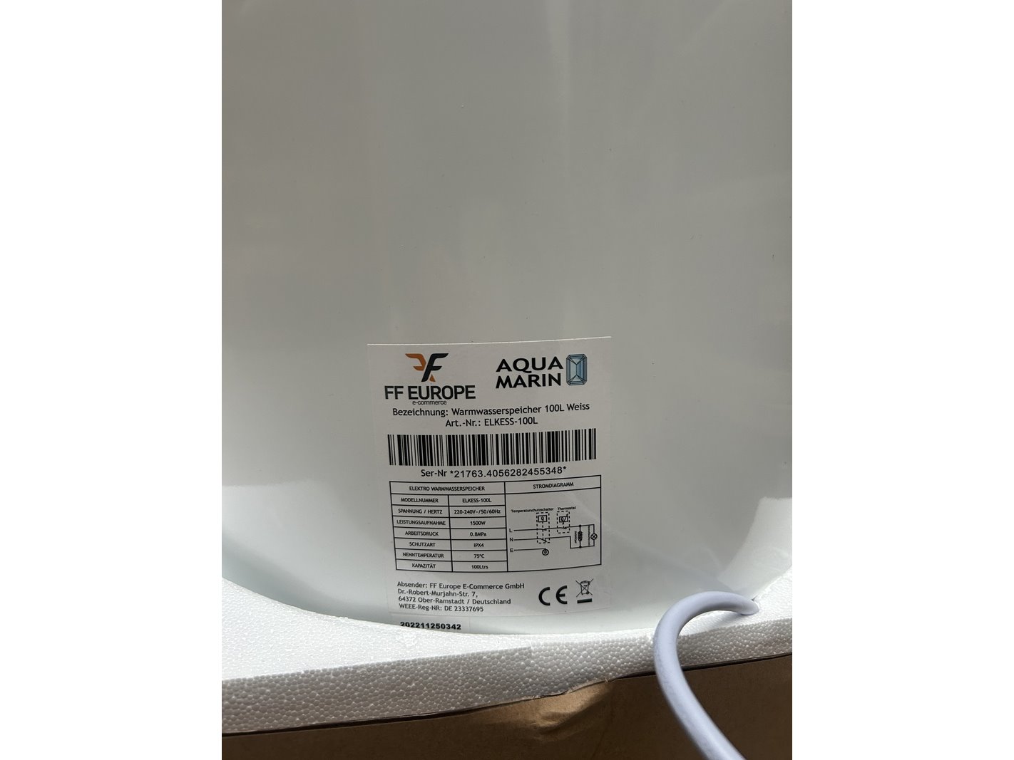 Merk: Aquamarin Product: Elektrische warmwaterboiler 100 liter Conditie: nieuw