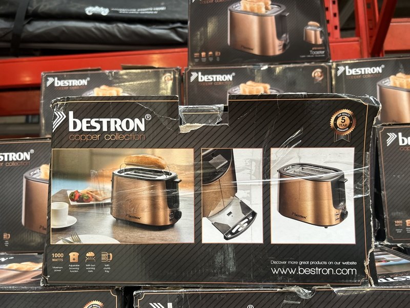 Merk: Bestron Product: Broodrooster Specificaties: Nieuw, showroom modellen en demo modellen. De verpakking kan beschadigd zijn. Showroom modellen en demo modellen kunnen niet werkend zijn en/of niet compleet.