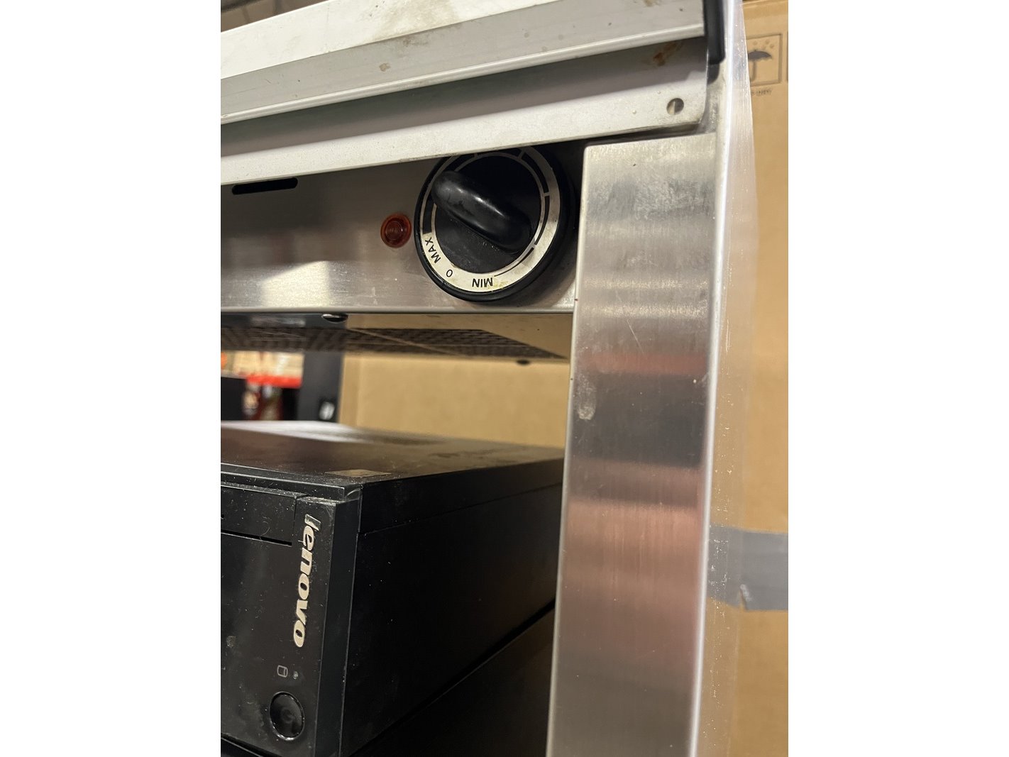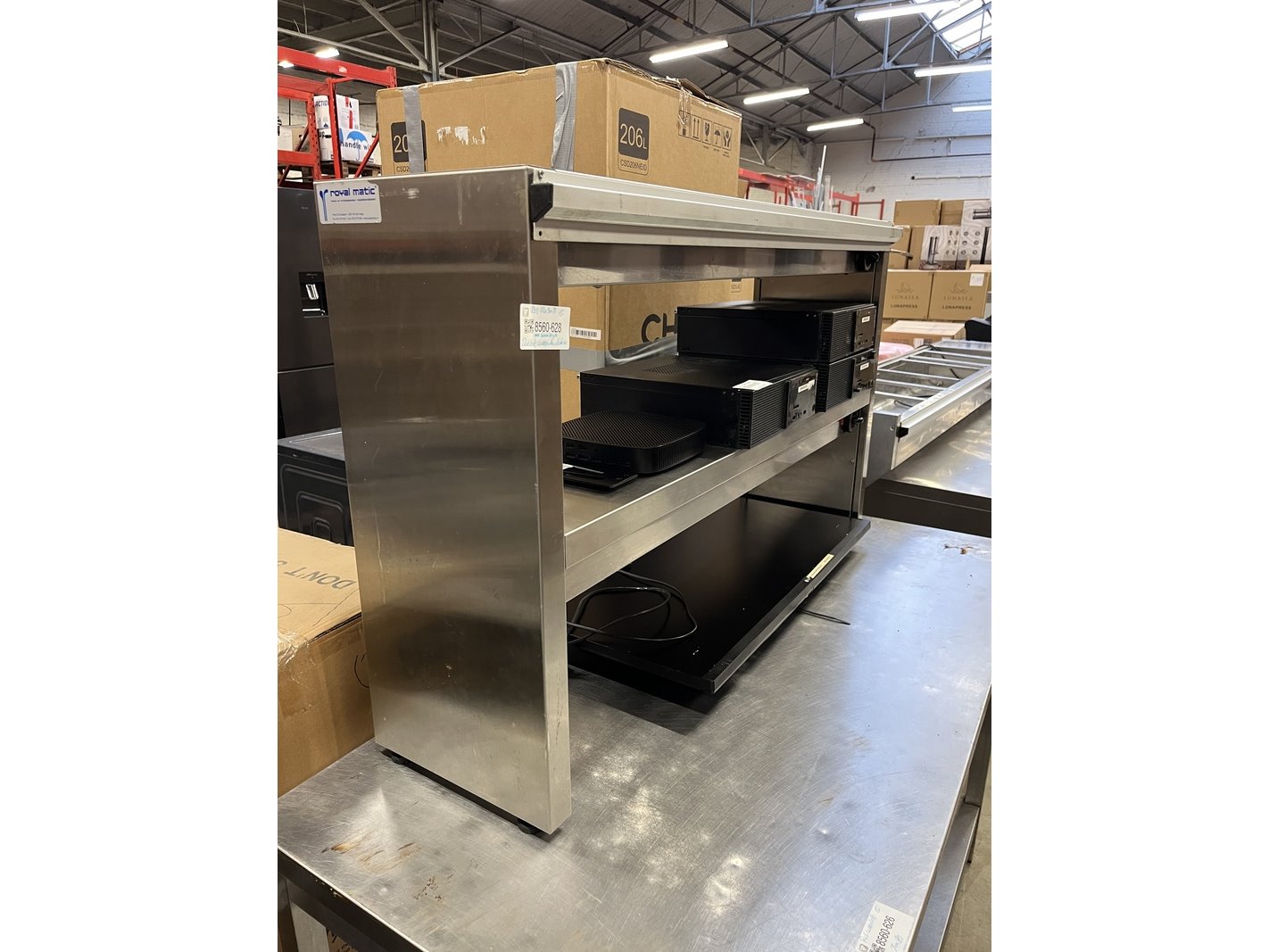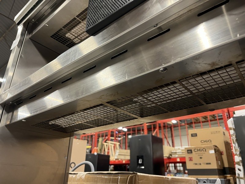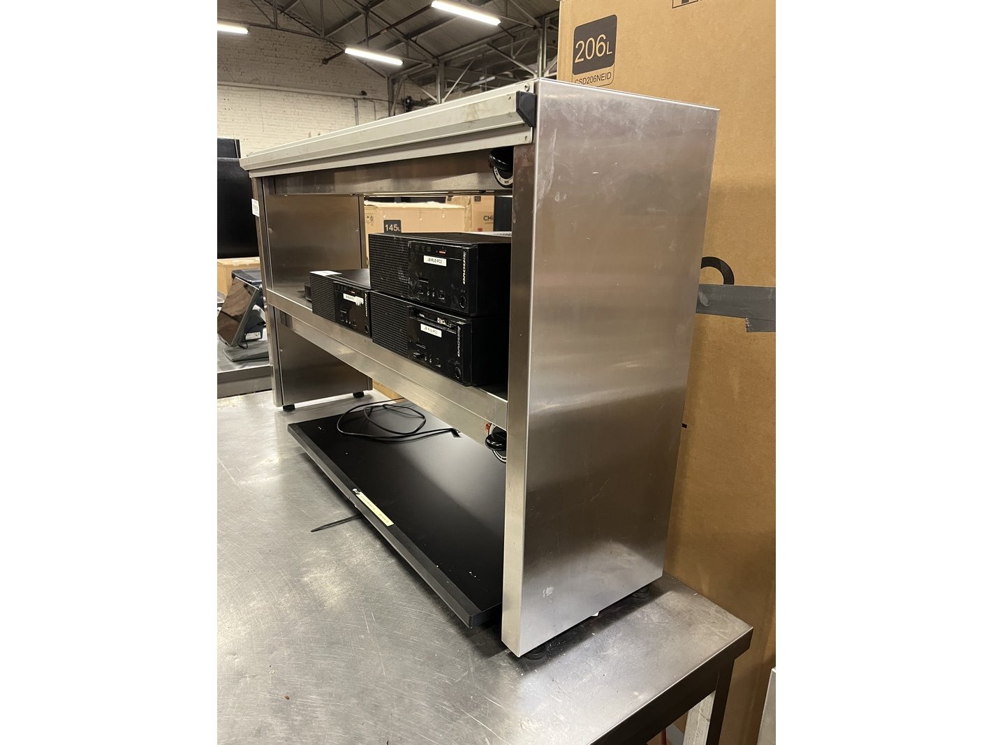 Product: Warmhoudbrug met bonnenhouder 120x30x73 cm Materiaal: rvs Conditie: gebruikt