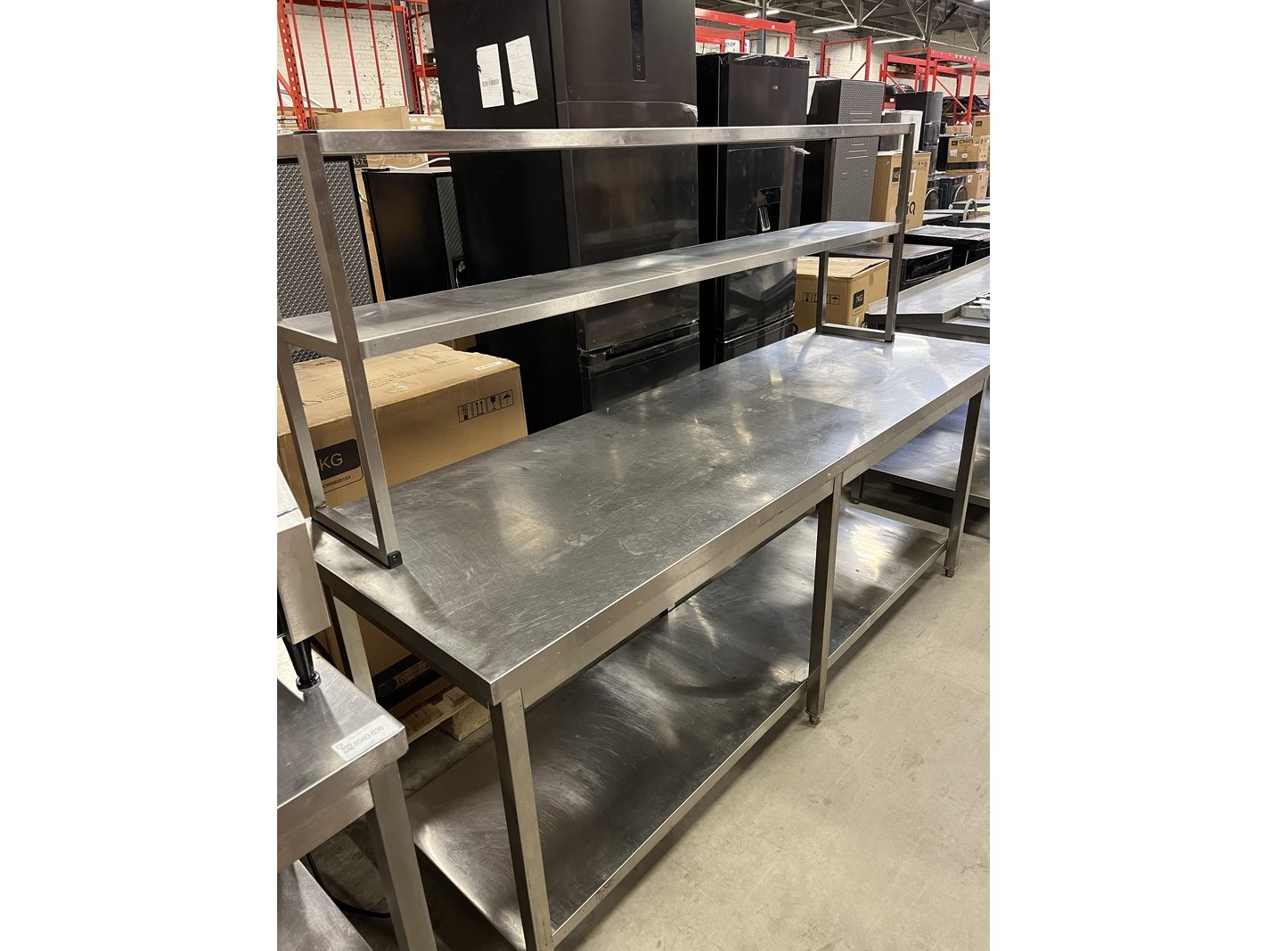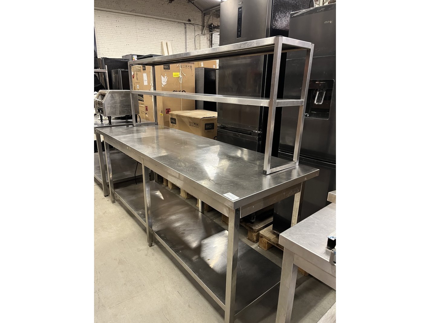 Rvs werktafel 220x70x89 cm met etagère 2-laags
