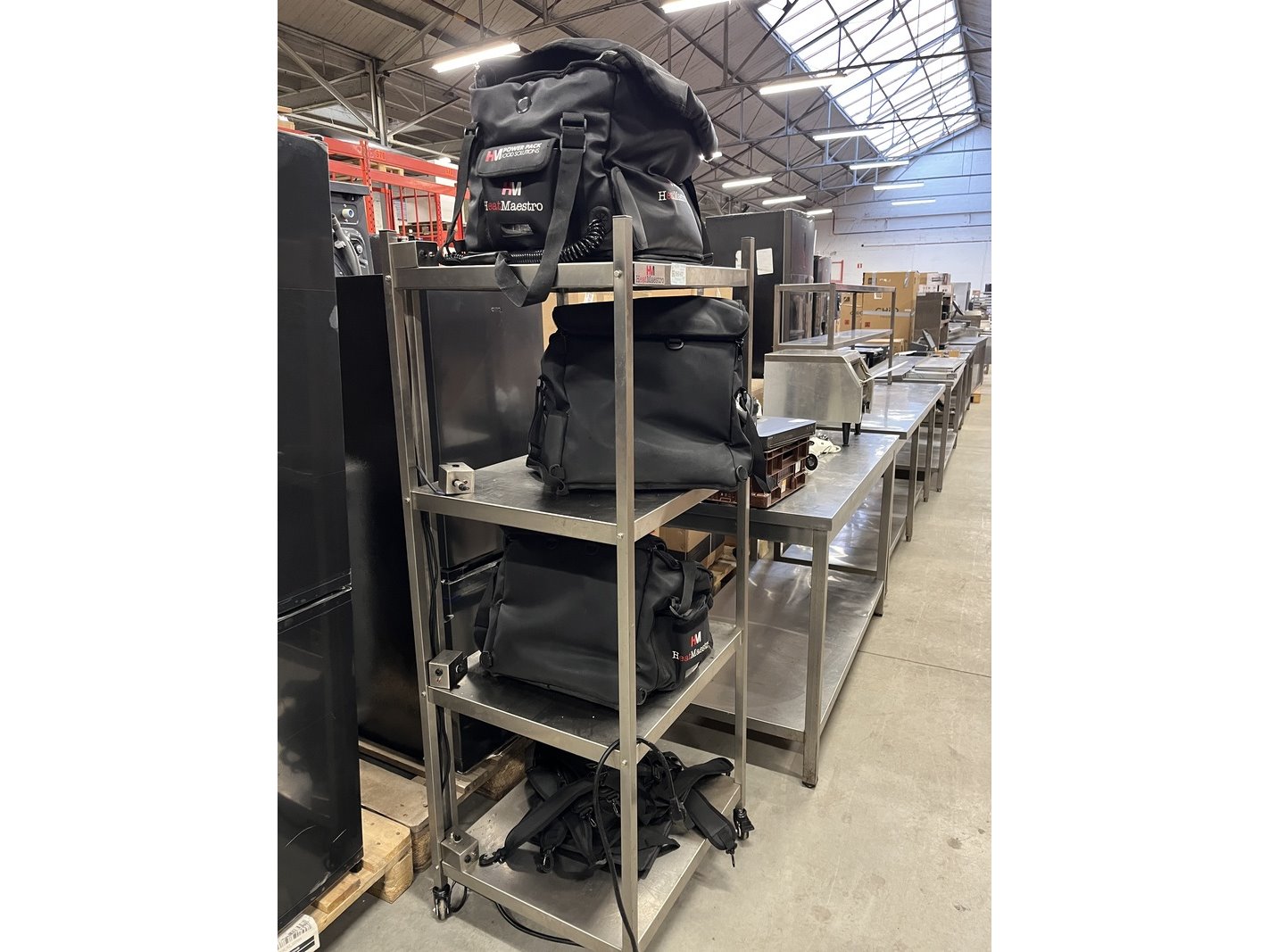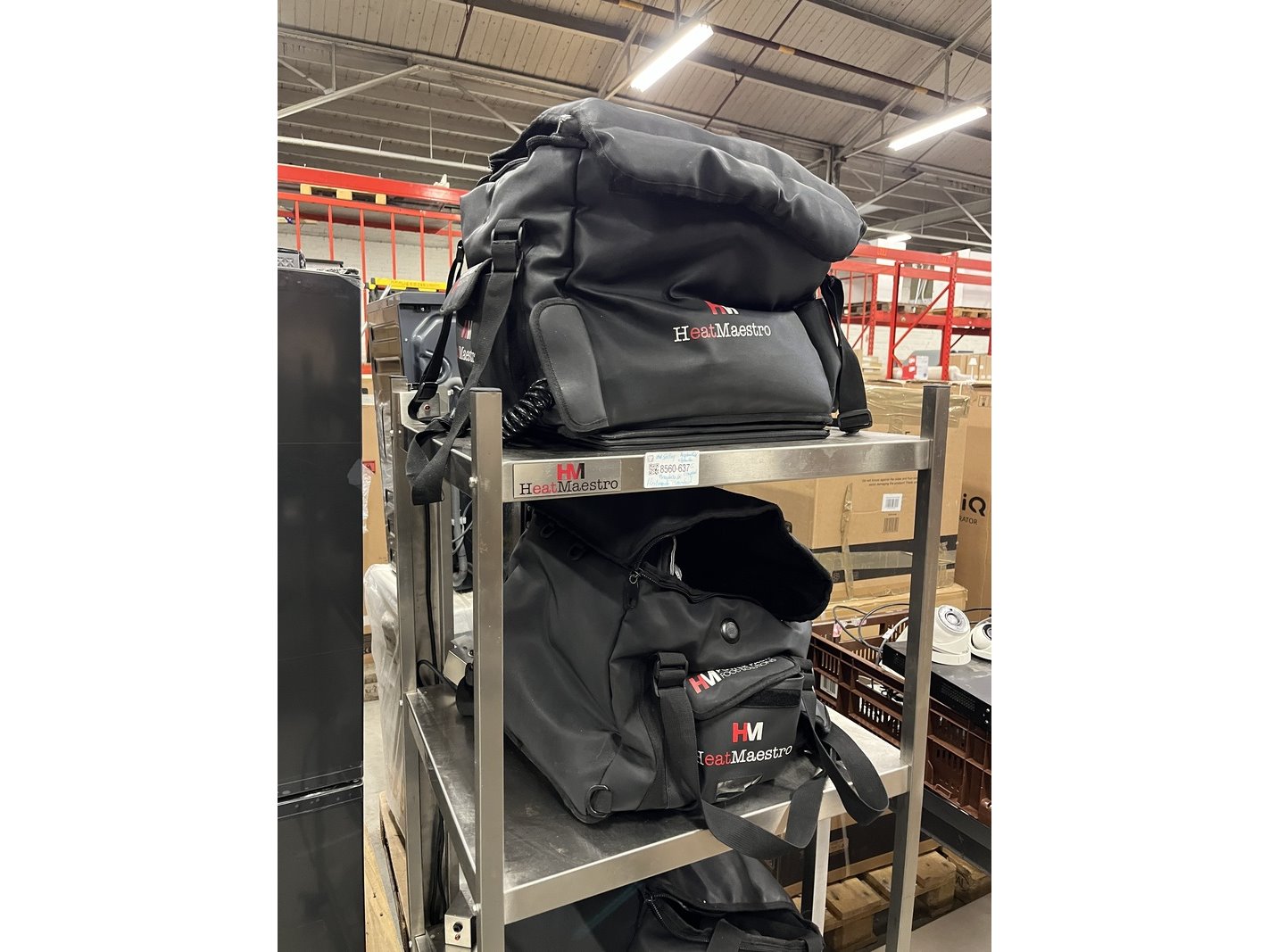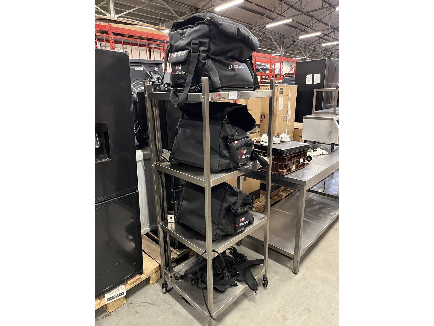 Merk: Heatmaestro Product: Rvs stelling inclusief 4 bezorgtassen met HeatElement Conditie: gebruikt Specificaties: 1 oplaadkabel afgebroken.
