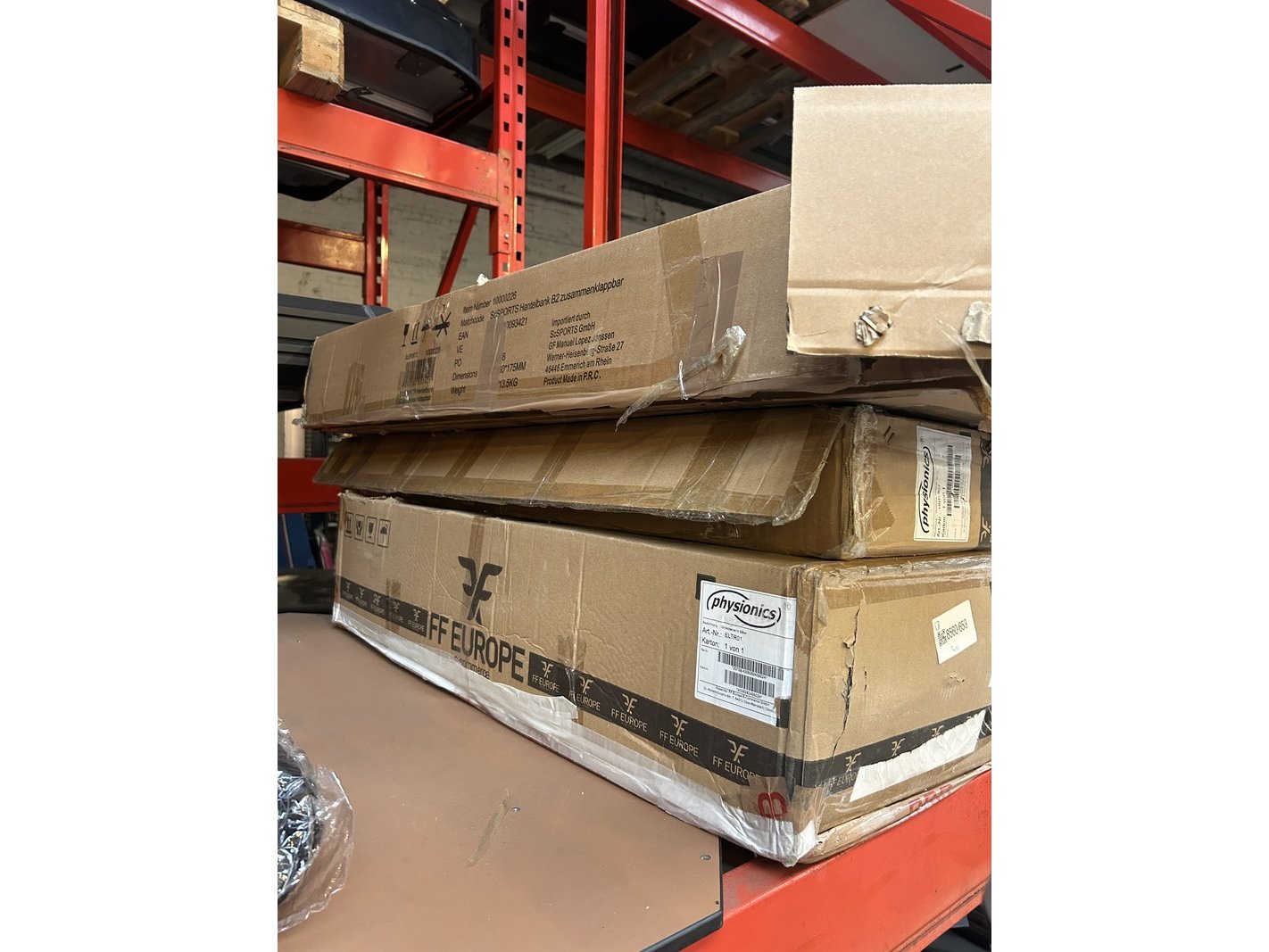 3x fitnessapparaten w.o. crosstrainer, halterbank physionics