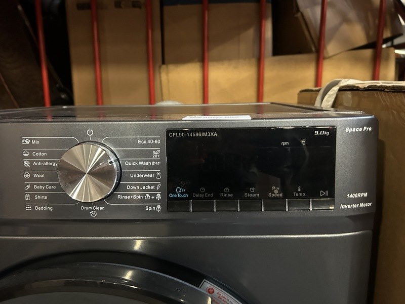 Merk: CHiQ Product: Wasmachine 9 kg AI Smart energieklasse A Afmeting: 600x577x850 mm Specificaties: Demo model.