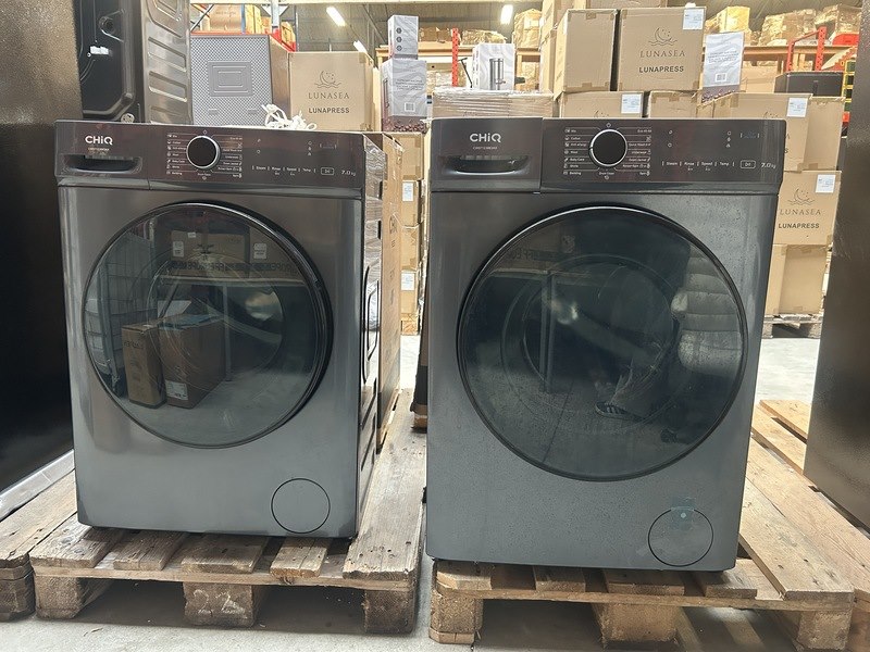 Merk: CHiQ Product: Wasmachine 7 kg AI Smart energieklasse A Afmeting: 600x465x850 mm Conditie: gebruikt