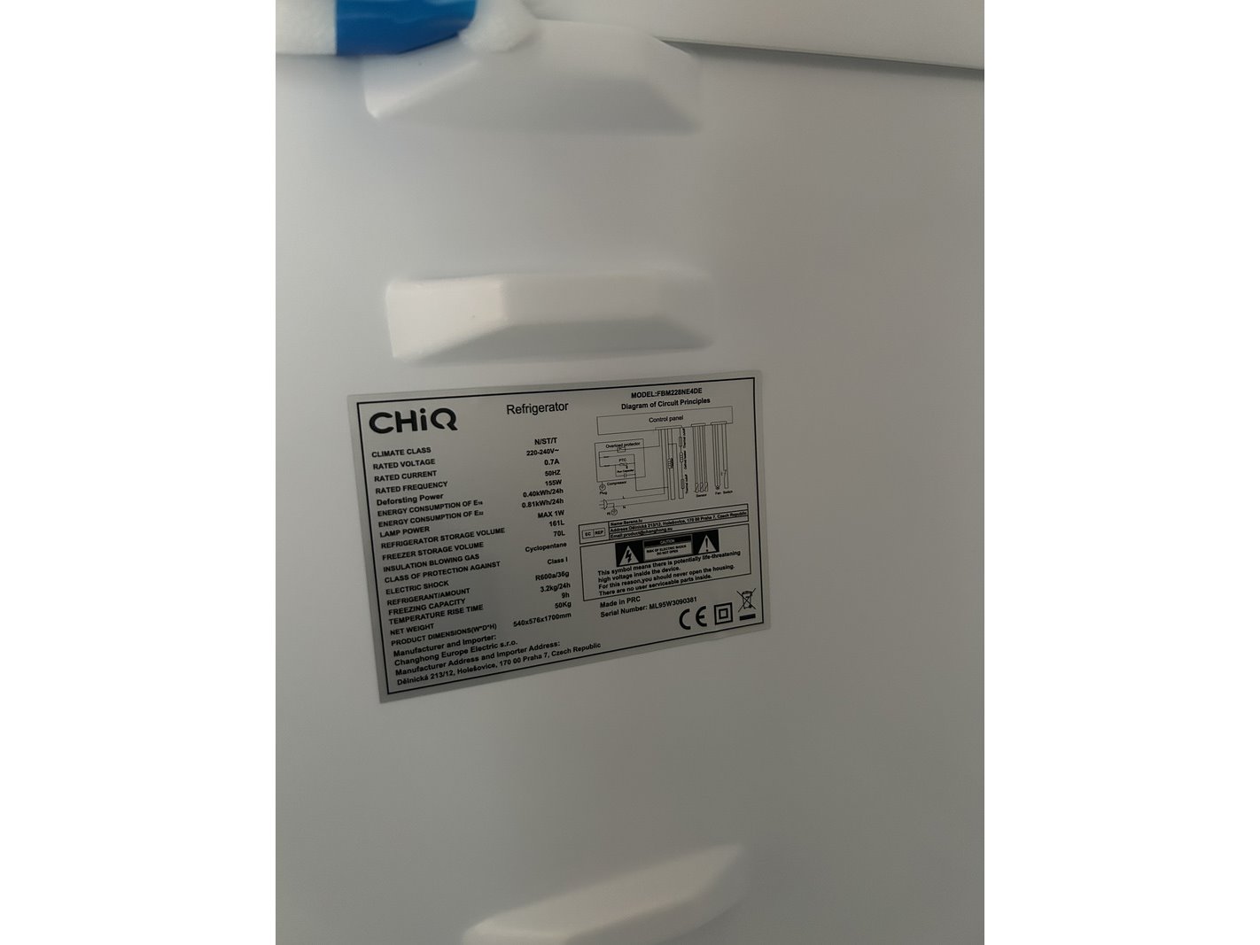 Merk: CHiQ Product: Koel-vriescombinatie 231 liter Afmeting: lxbxh 545x576x1700 mm Specificaties: Showroom model.