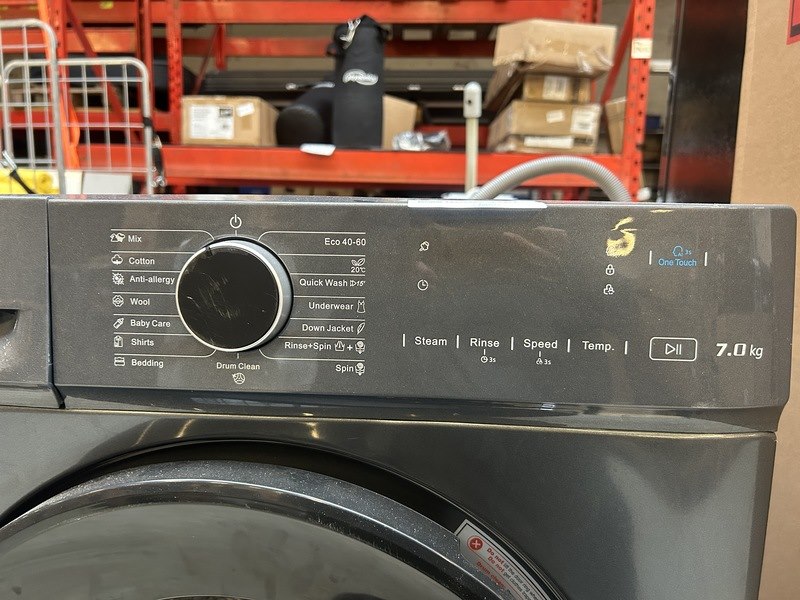 Merk: CHiQ Product: Wasmachine 7 kg AI Smart energieklasse A Afmeting: 600x465x850 mm Specificaties: Demo model.