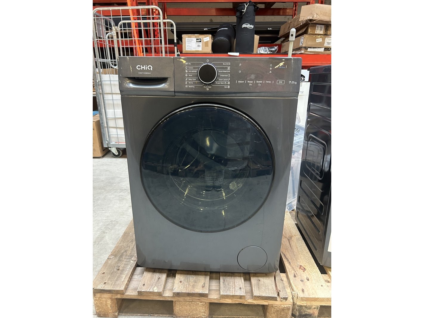 Merk: CHiQ Product: Wasmachine 7 kg AI Smart energieklasse A Afmeting: 600x465x850 mm Specificaties: Demo model.
