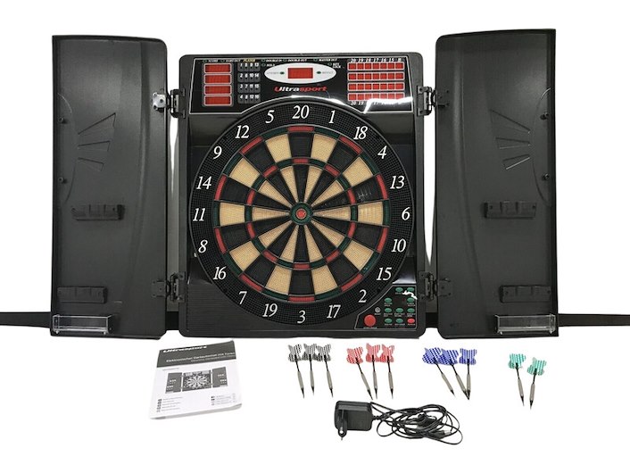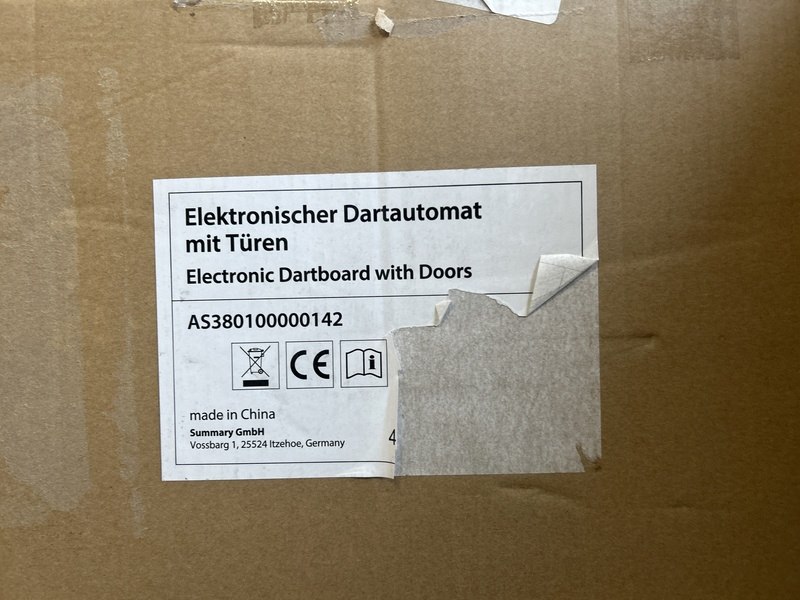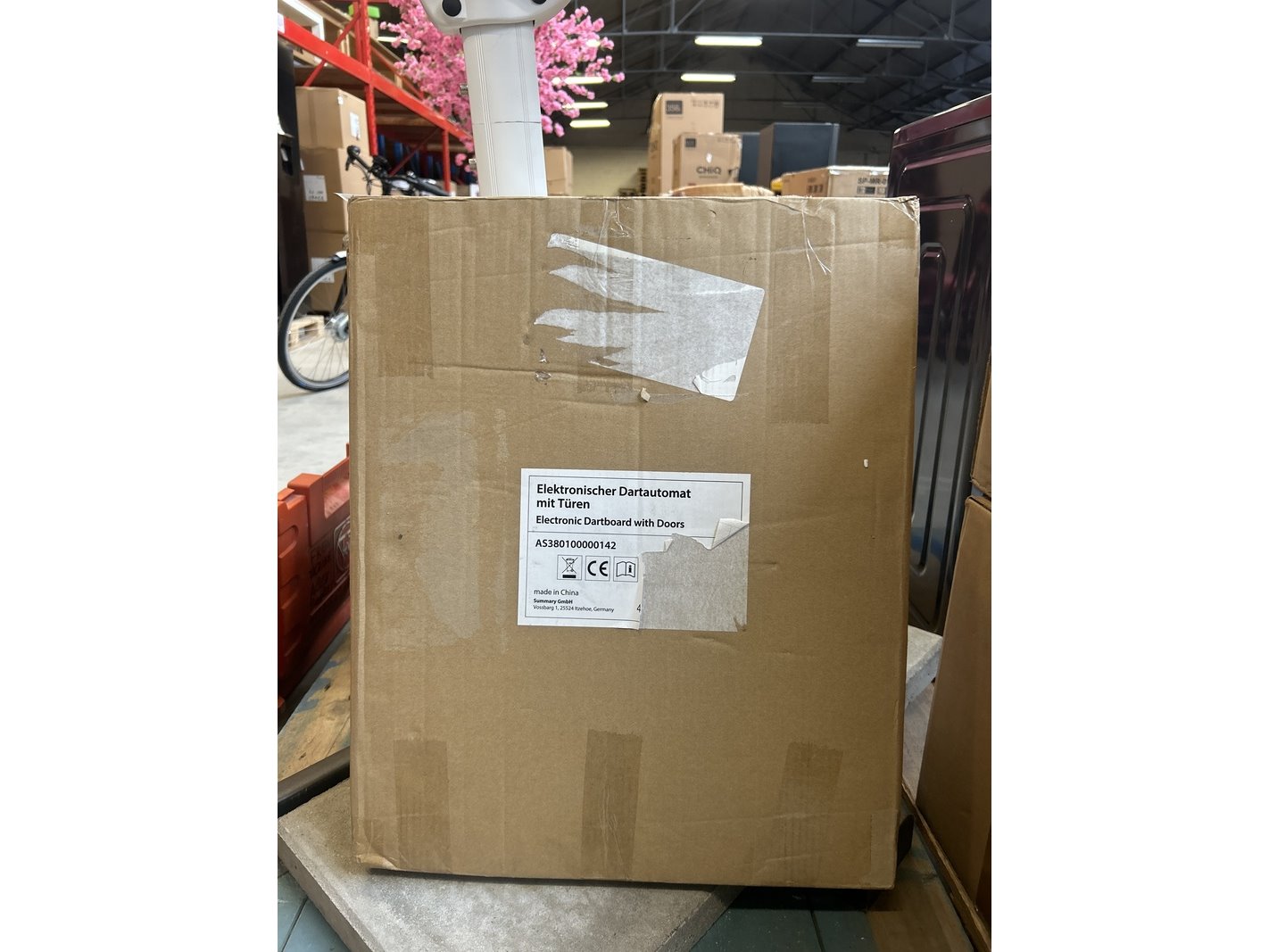 Product: Dartbord met deuren Conditie: nieuw Specificaties: Verpakking beschadigd.