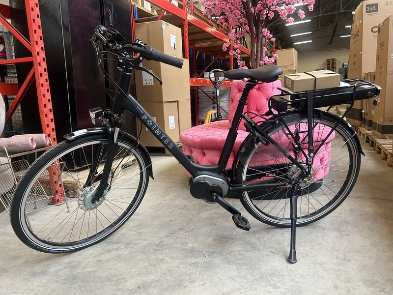 Merk: Pointer Product: Elektrische fiets hoogte 50 Kleur: mat zwart Conditie: nieuw Specificaties: Heeft uitsluitend in een showroom gestaan.