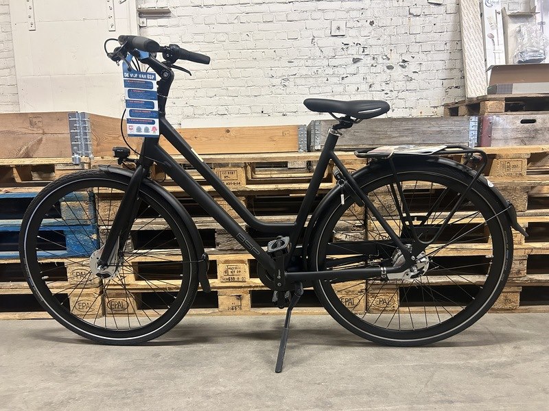 Merk: BSP Product: Damesfiets hoogte 56 7 versnellingen Kleur: onyx black Specificaties: Showroom model. Heeft uitsluitend in een showroom gestaan.