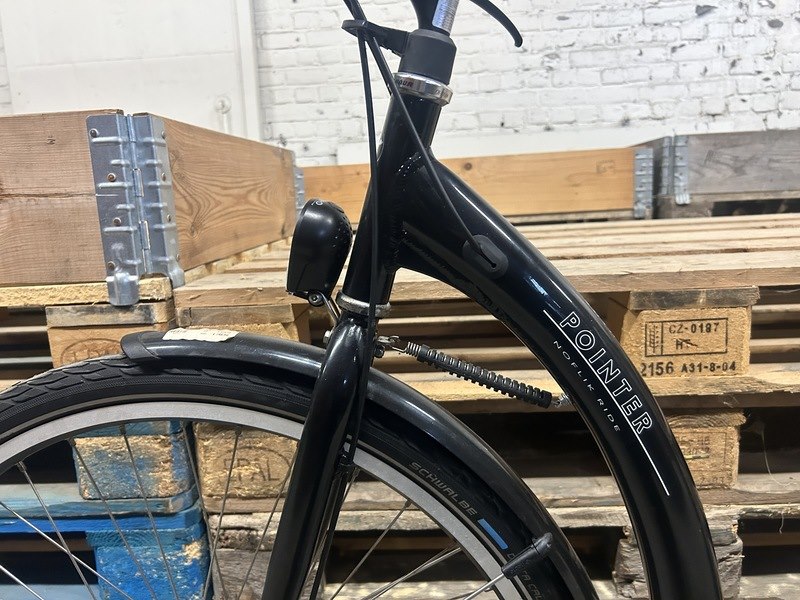 Merk: Pointer Product: Damesfiets hoogte 50 7 versnellingen Kleur: diamant black Specificaties: Showroom model. Heeft uitsluitend in een showroom gestaan. De fiets heeft een lekke band.