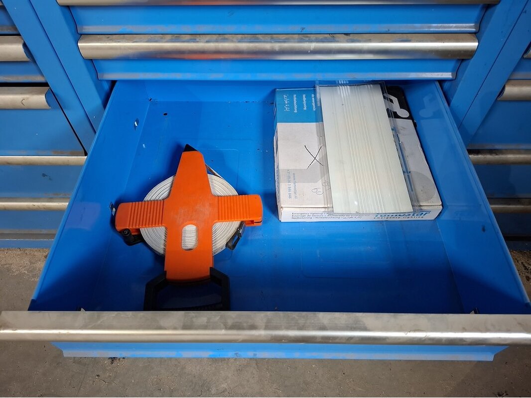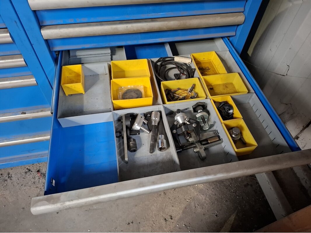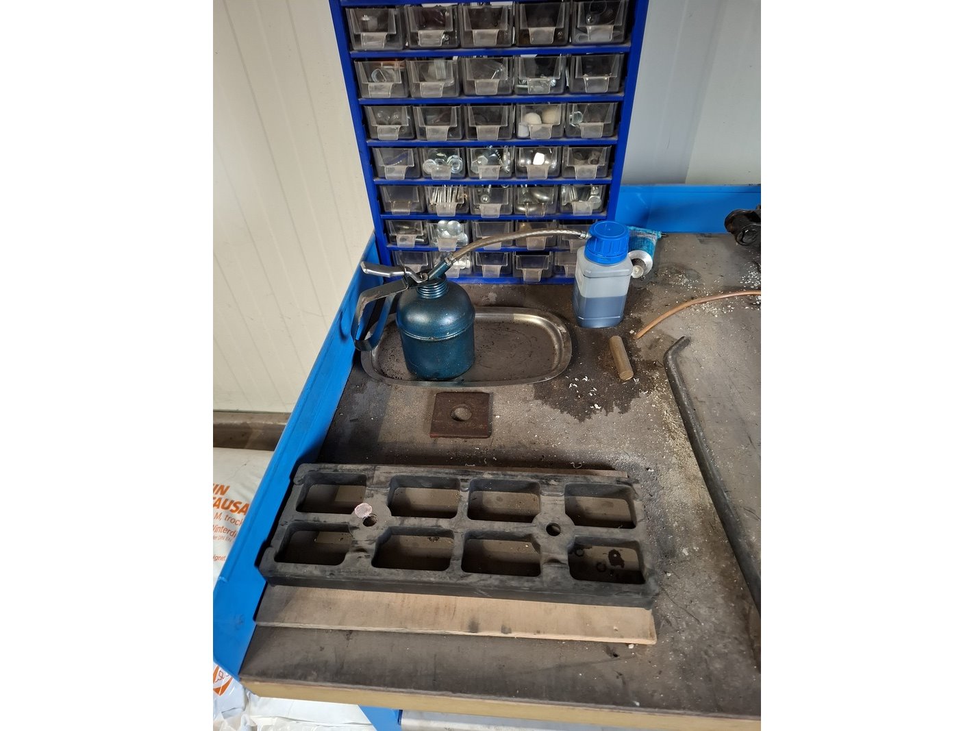 Merk: Datona Product: Werkbank met diverse gereedschap Afmeting: lxbxh ca 200x66x100cm Specificaties: o.a. boren, draadtappen, vetpomp, borenslijper, etc.