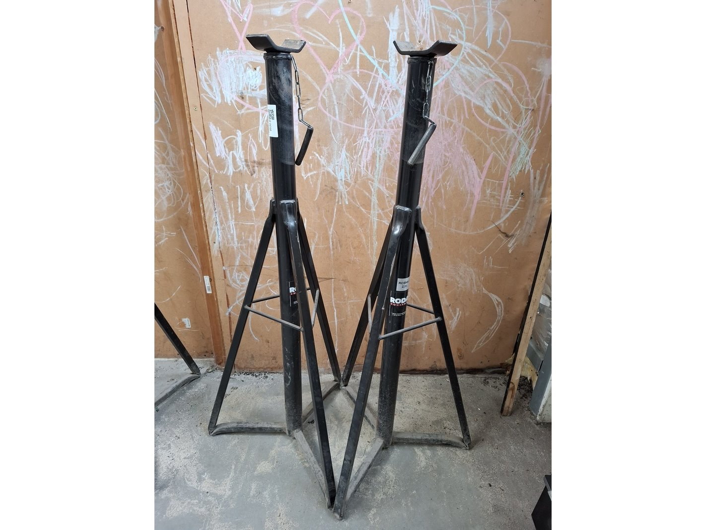 Merk: Rodac Product: 2x Assteun Afmeting: hoogte ingeschoven ca 125cm Specificaties: max 2500kg