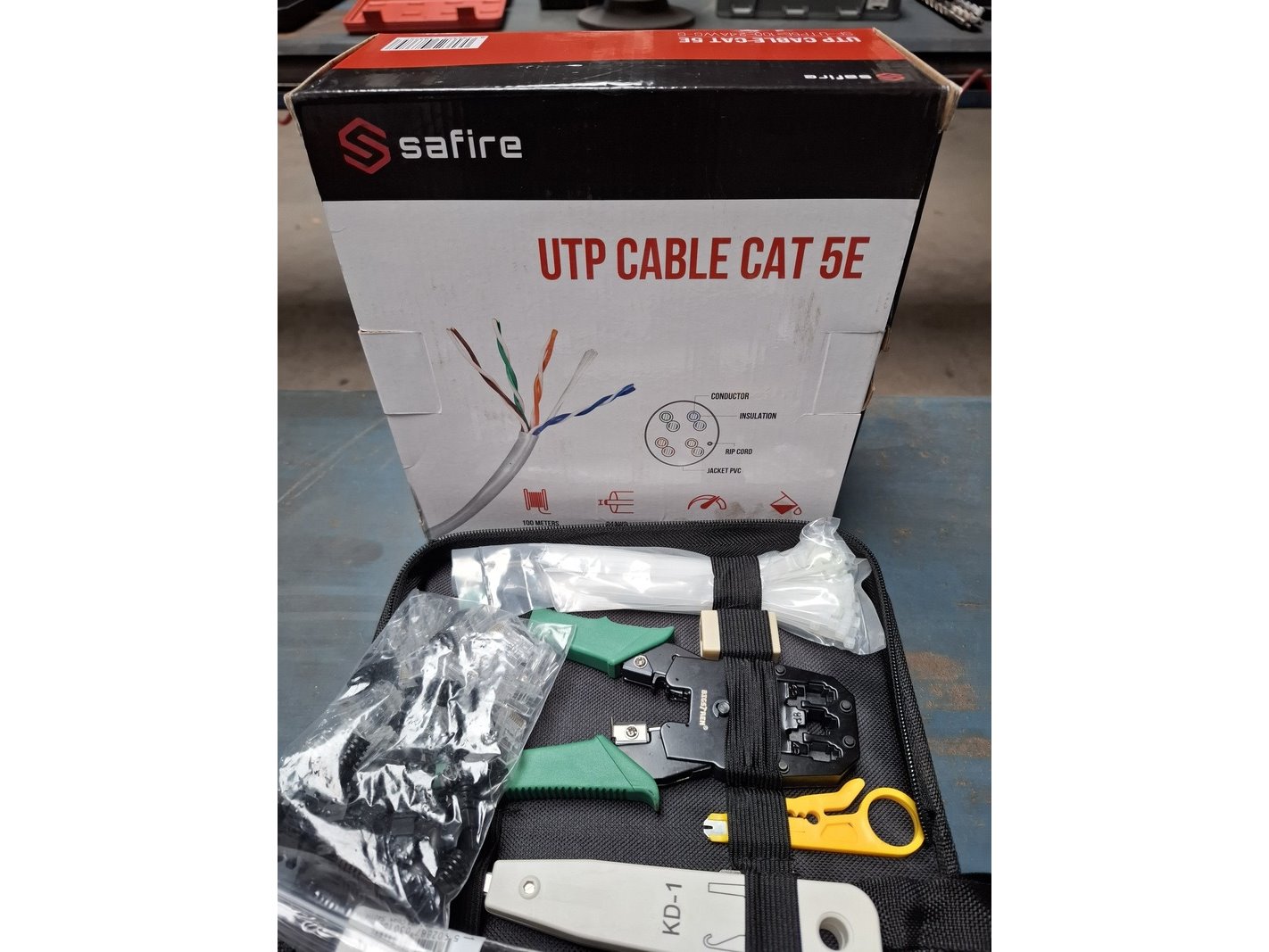 Merk: Safire Product: UTP kabel tang met kabel Specificaties: kabel tang ORP-200X 12 P10; UTP Cable Cat 5E