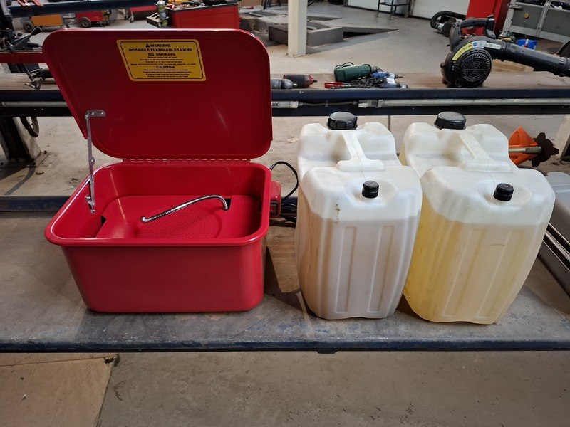 Product: Ontvetterbak Afmeting: afm. ca 42x34x23cm Specificaties: incl. 2x jerrycan ontvetter