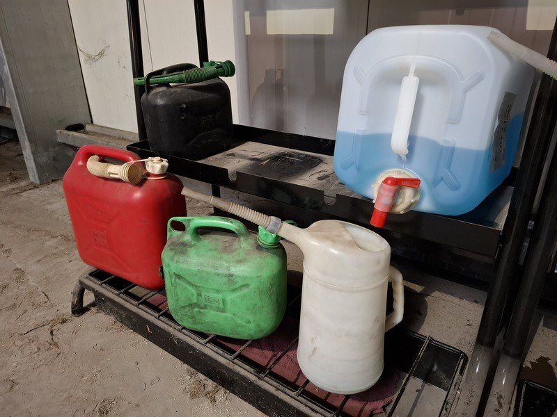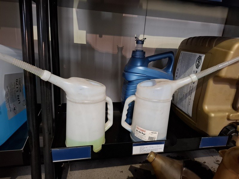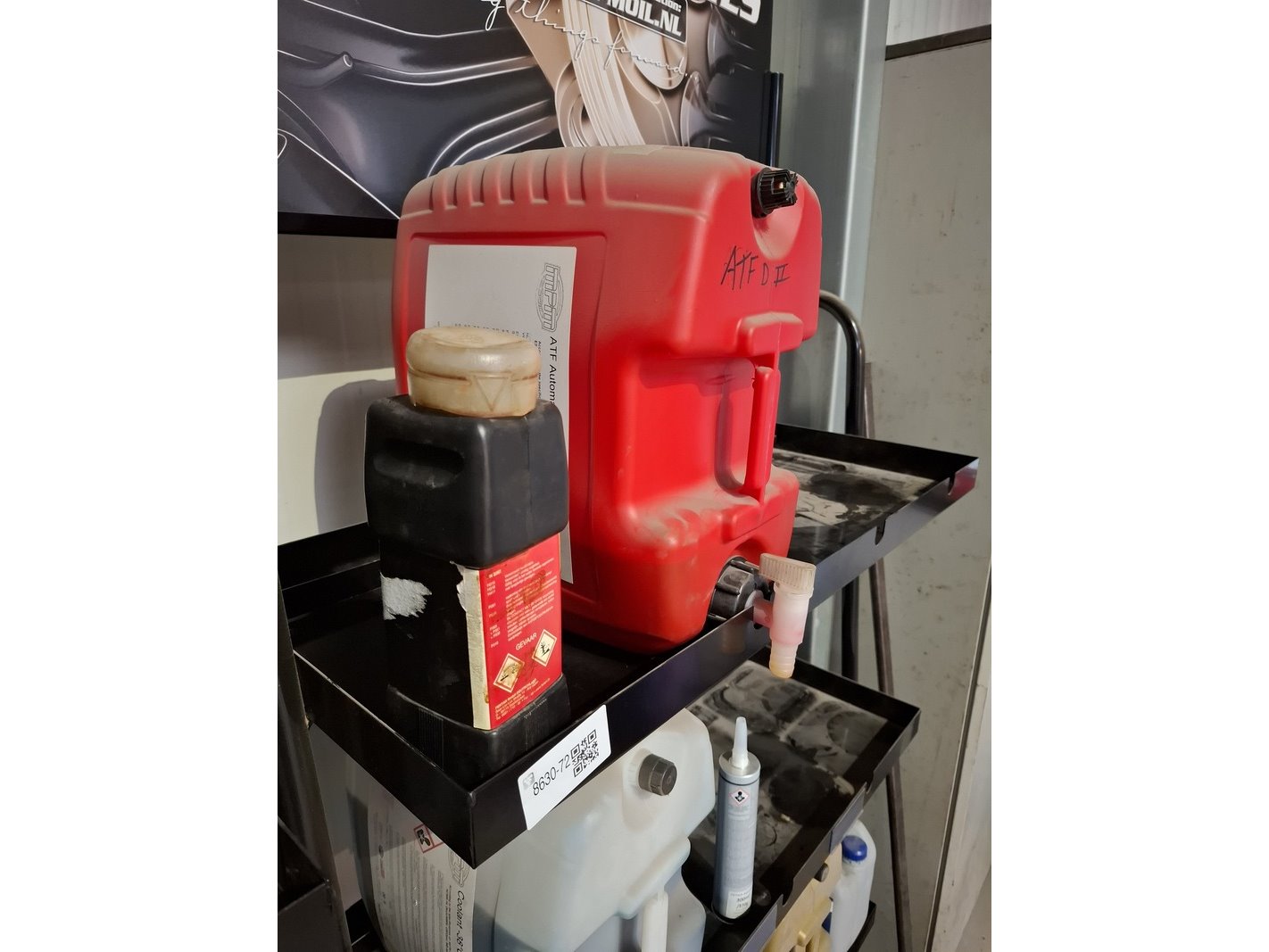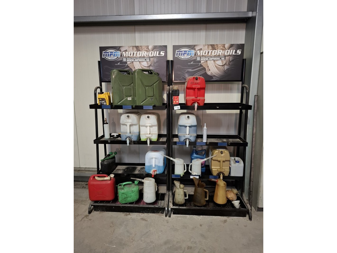 2x stelling met , diverse vloeistoffen en smeermiddelen