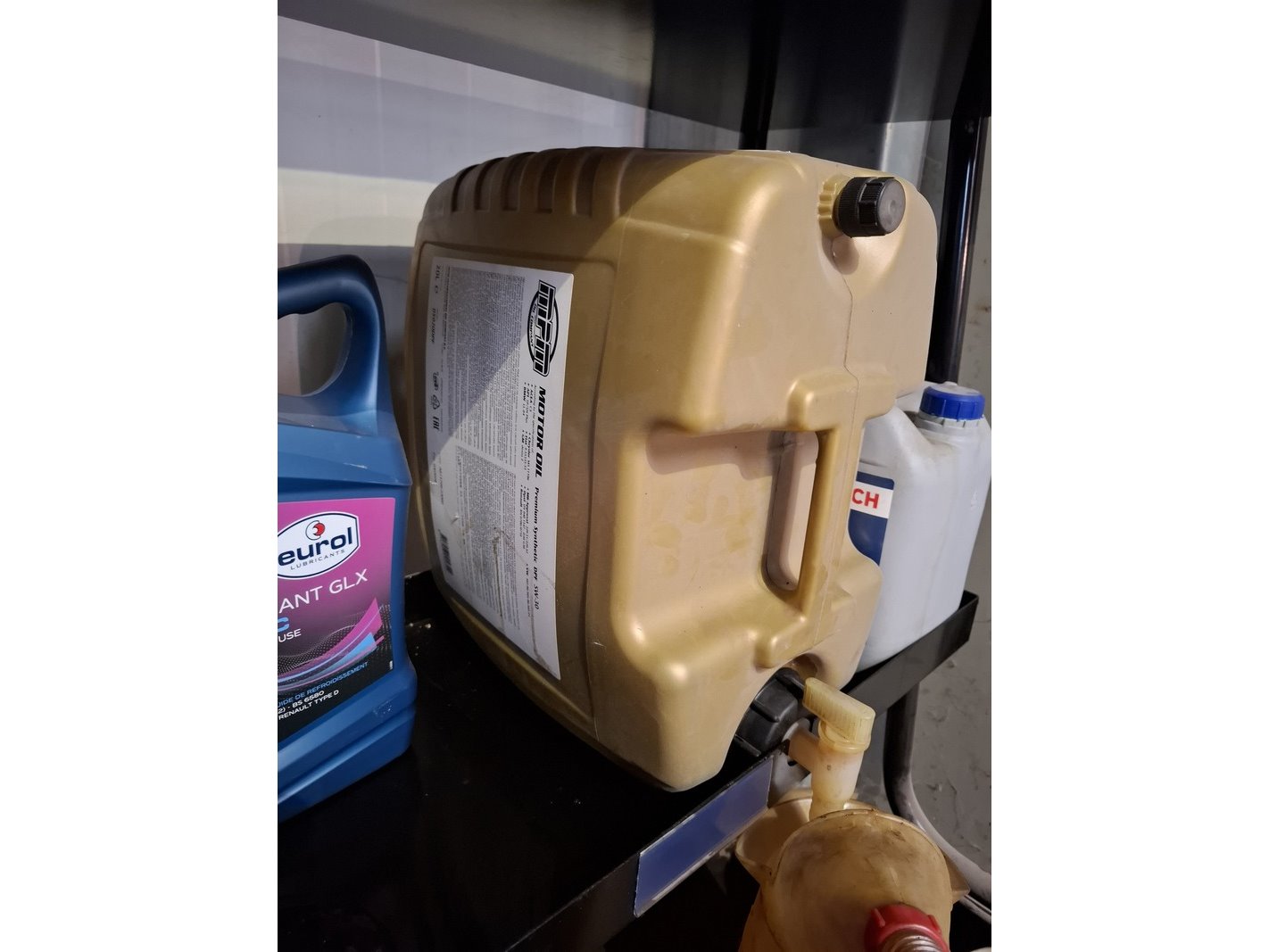 Product: 2x Stelling met Afmeting: afm. stelling p.s. ca 210x100x60cm Specificaties: o.a. 2x SP Fluid, transmissieolie ATF D II, koelvloeistof, ruitreiniger, motor olie SW-30, kannen, jerrycans, etc. (betreft aangebroken verpakkingen)