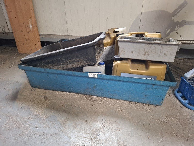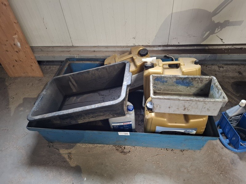 Product: Lekbak met diverse vloeistoffen Materiaal: metaal Afmeting: lxbxh ca 120x80x25cm