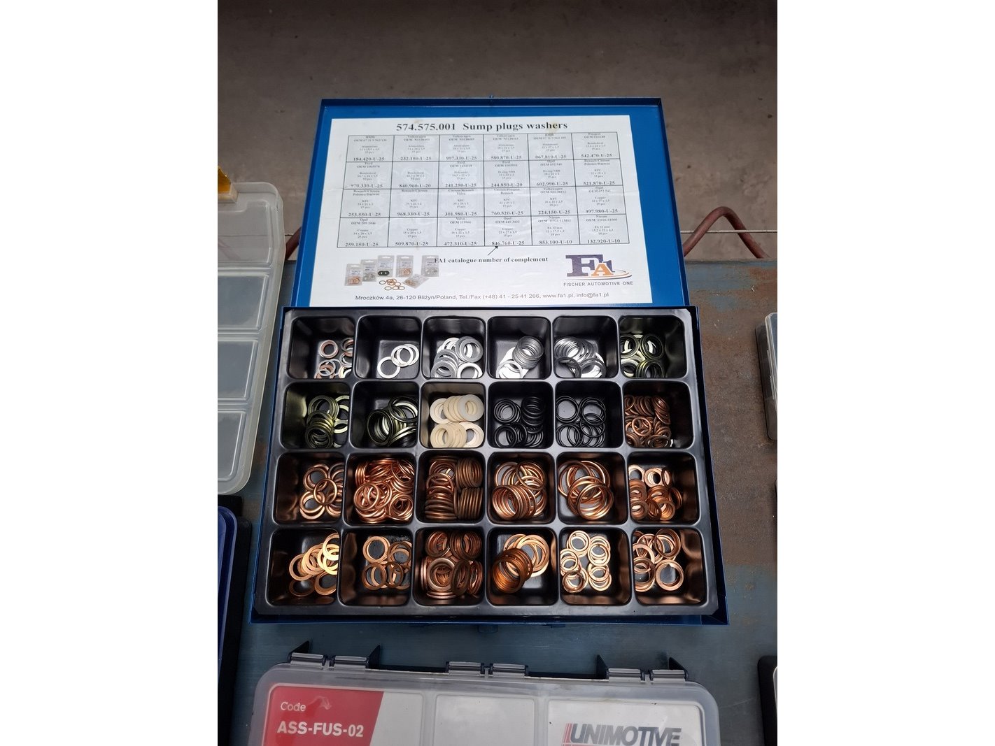 Product: 6x Assortiment werkplaats benodigdheden Specificaties: o.a. zelf borgende moeren, sluitringen, fusee kogelhoezen, afdichtingringen, etc.