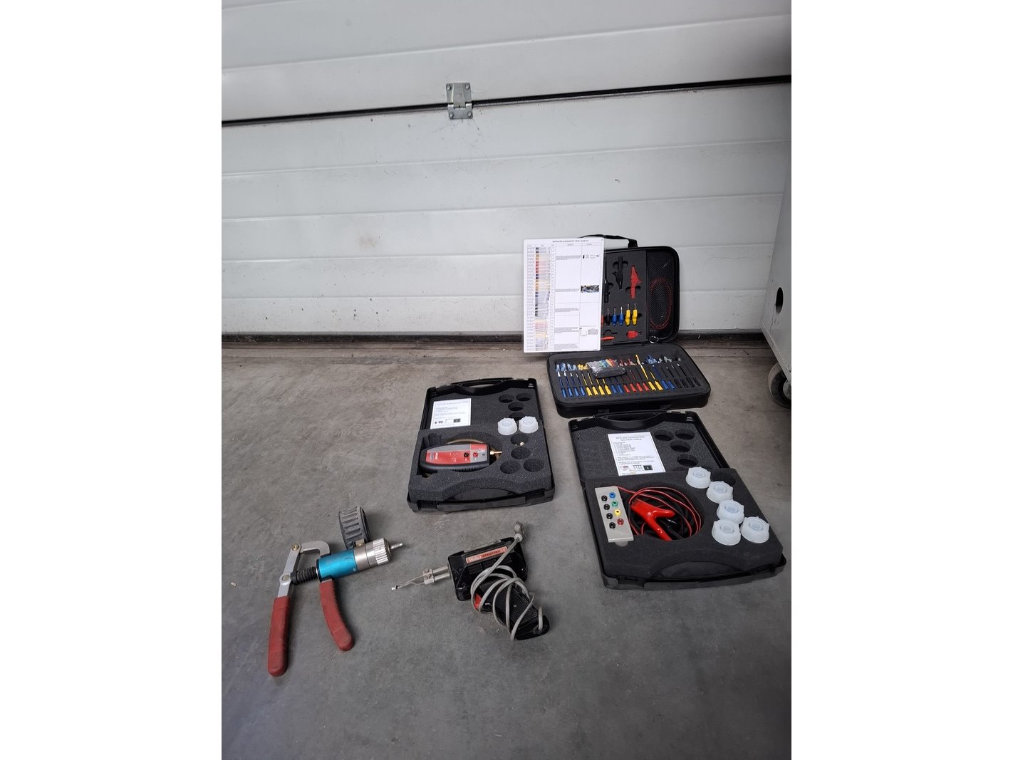 Product: Scoop diagnose apparatuur Specificaties: o.a. uitleesapparatuur Hella, Vacuümpomp, Common-rail retourflow meter, Handyscope HS4-diff, Soldeerpistool , Multimeter, Drukmeter GMTO APS 260, etc.